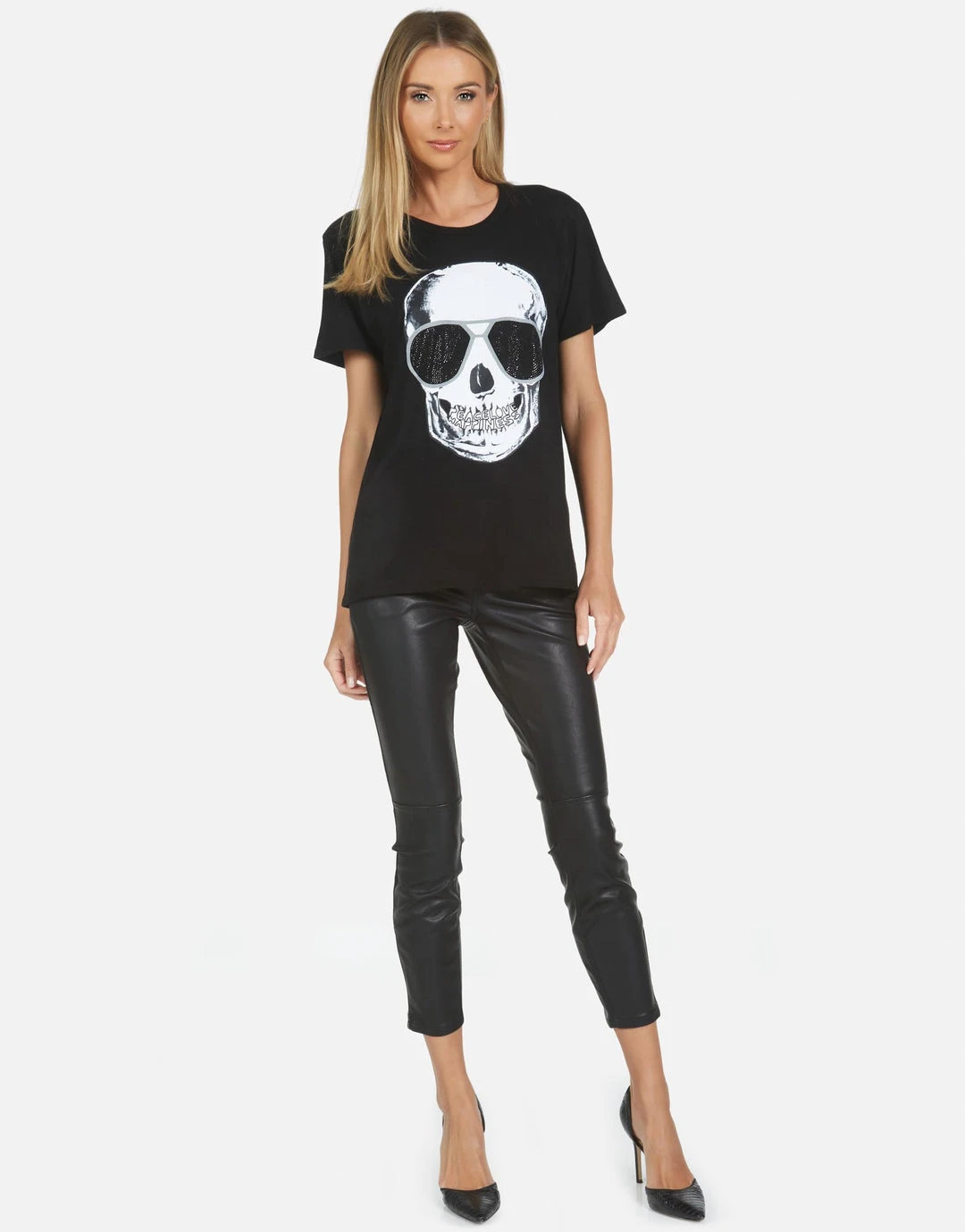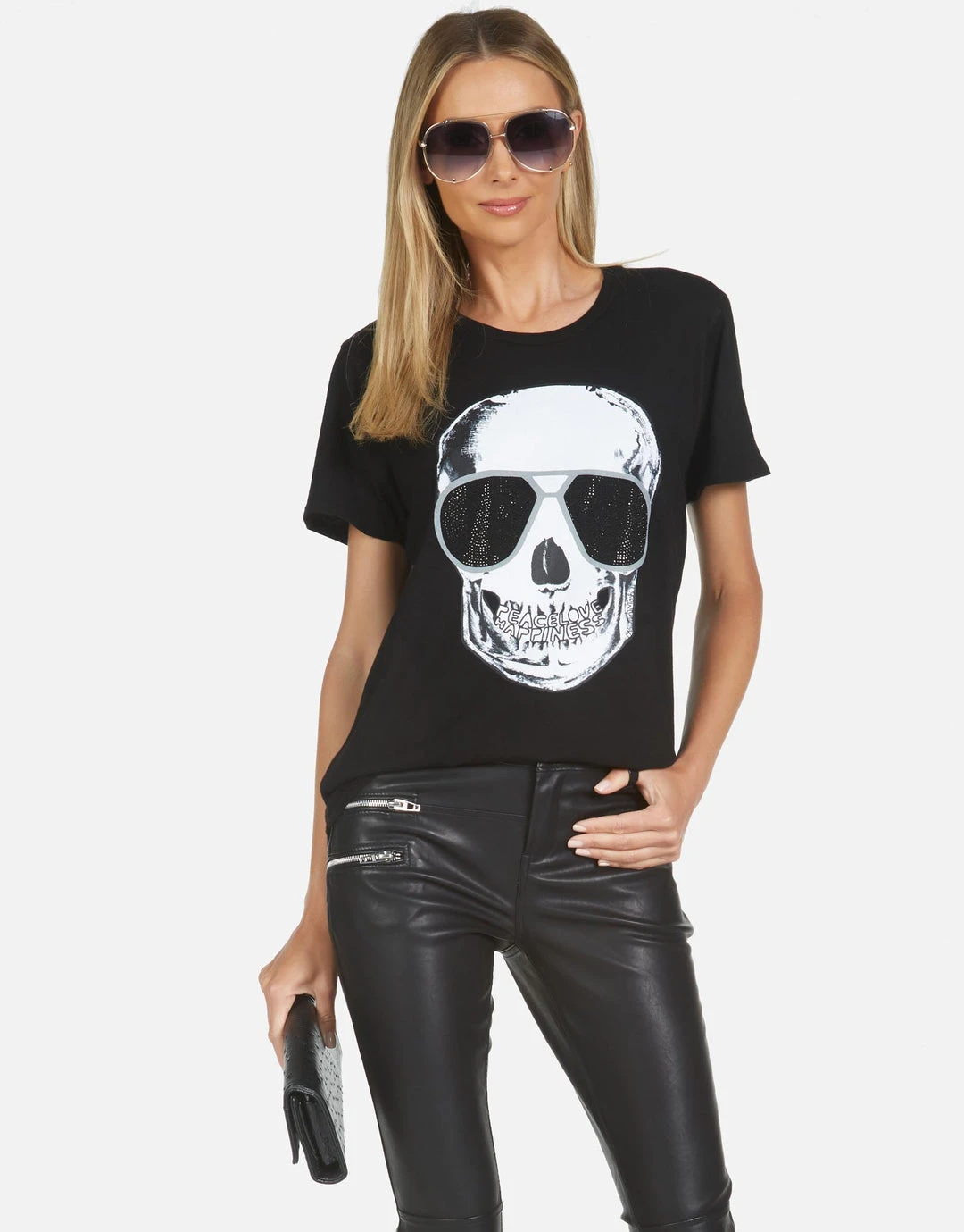 Cool Skull Printed on Ultra Soft Lightweight Tee in Black by Lauren Moshi.