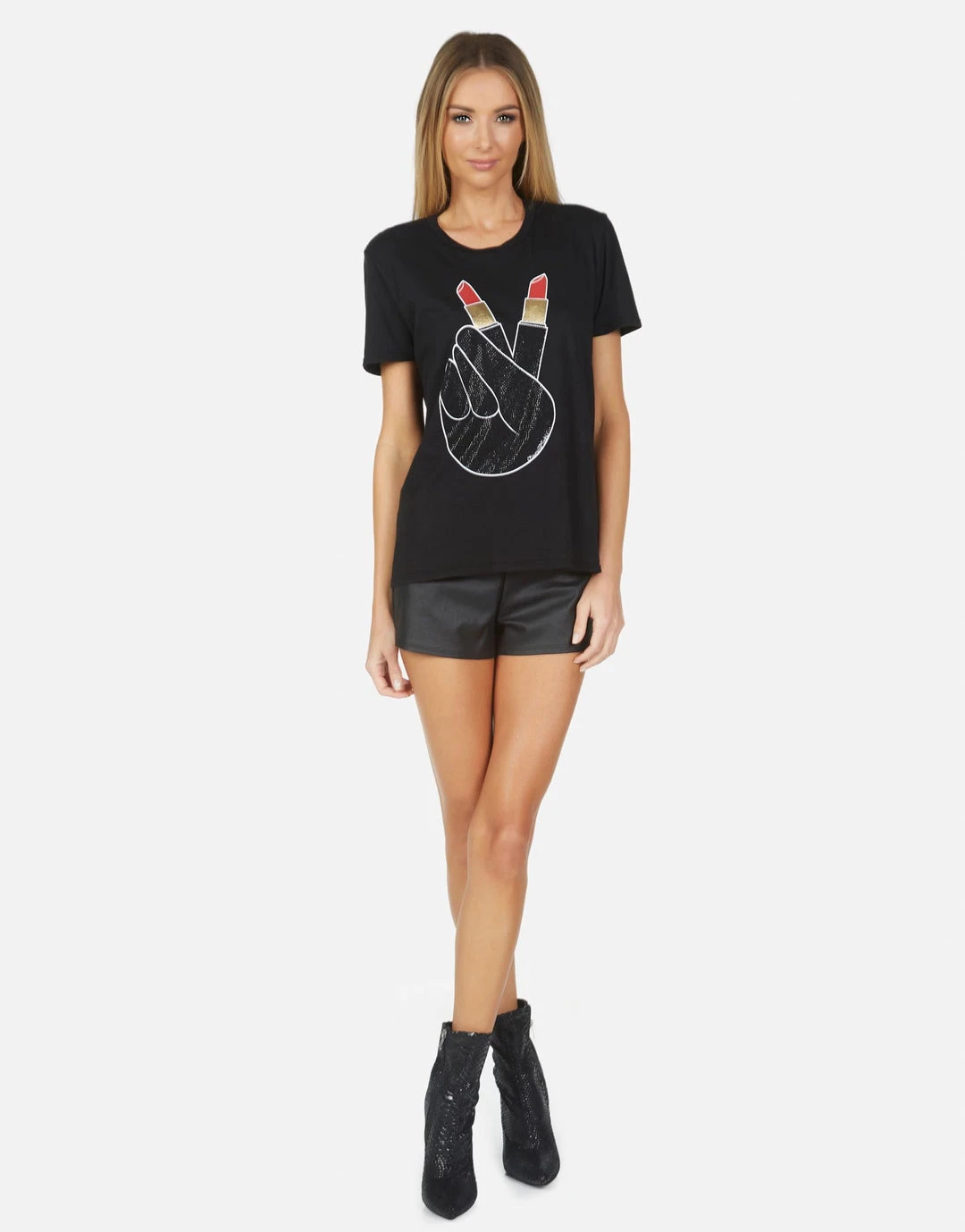 Lipstick Peace Printed on Ultra Soft Lightweight Tee in Black by Lauren Moshi.