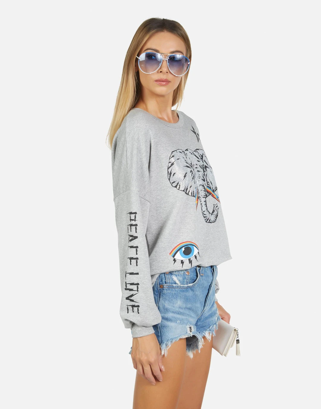 Elephant Bolt Elements Printed on Ultra Soft Lightweight Tee in Heather GRey by Lauren Moshi.