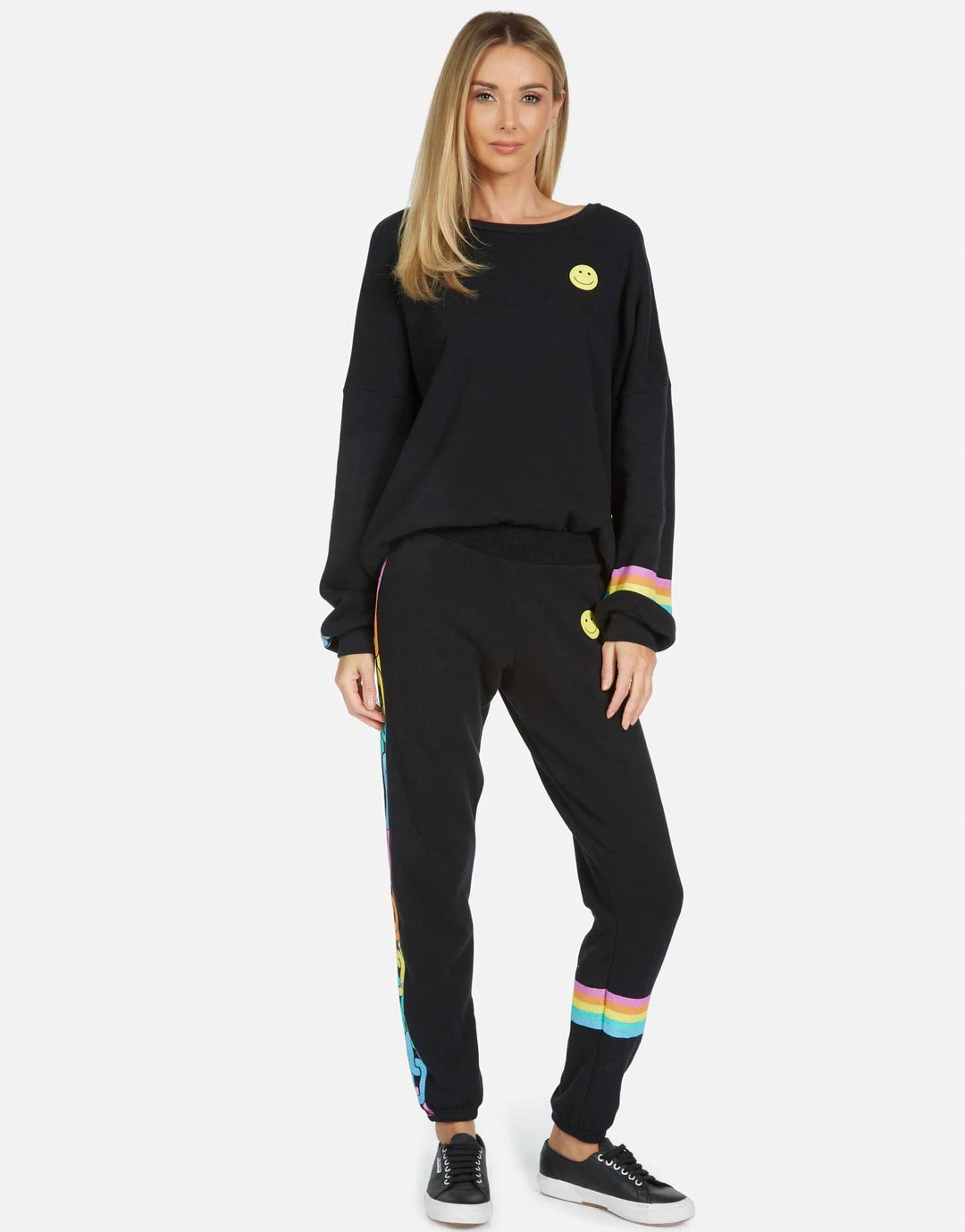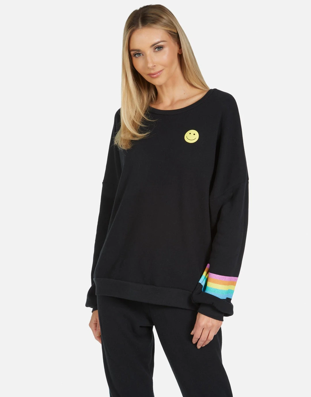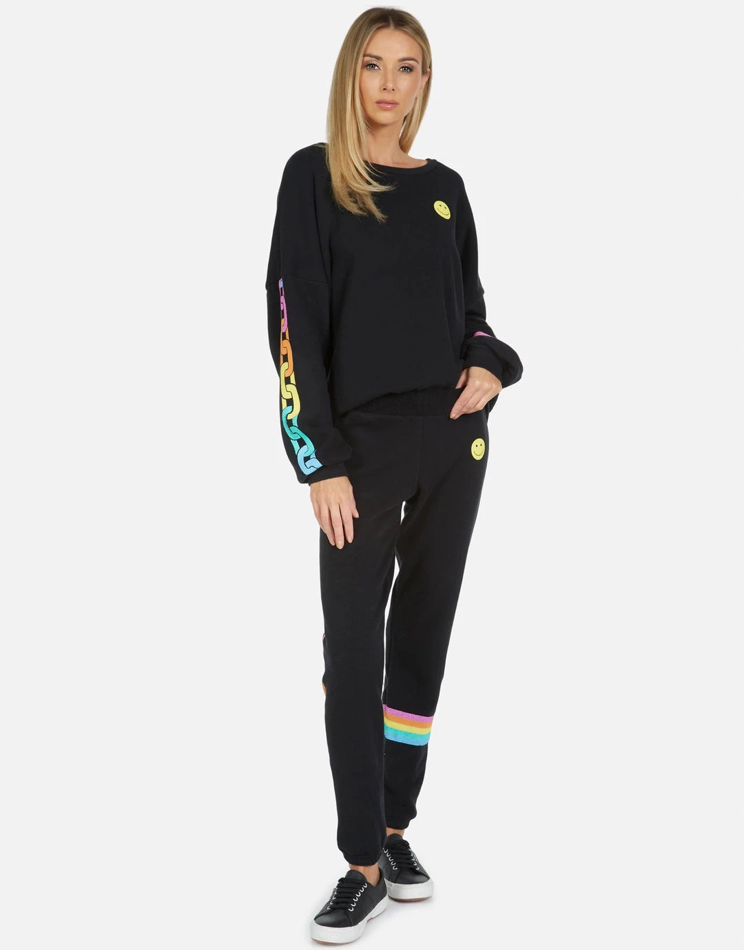 Happy Chains on Ultra Soft Lightweight Pullover in Black by Lauren Moshi.