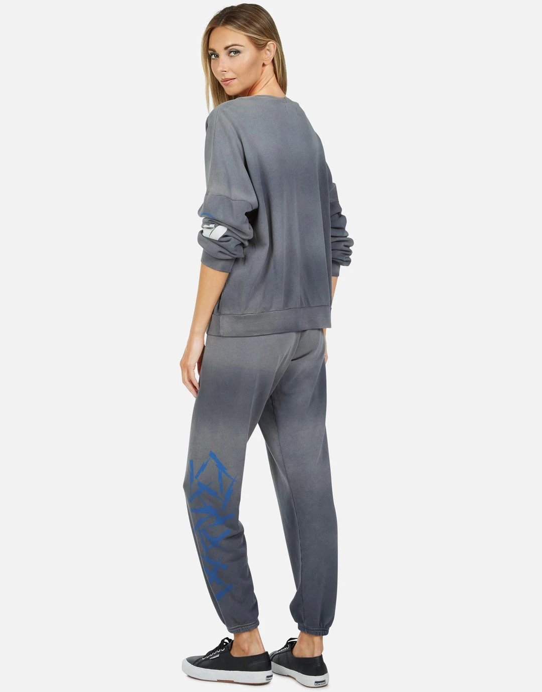 Moshi Lightning Skull Printed on Ultra Soft Lightweight Pullover in Faded Graphite by Lauren Moshi.