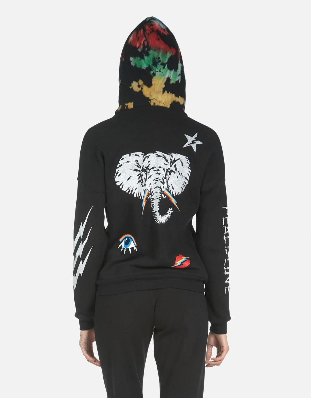 Elephant Bolt Elements Printed on Ultra Soft Lightweight Hoodie in Black/Primary Splash by Lauren Moshi.