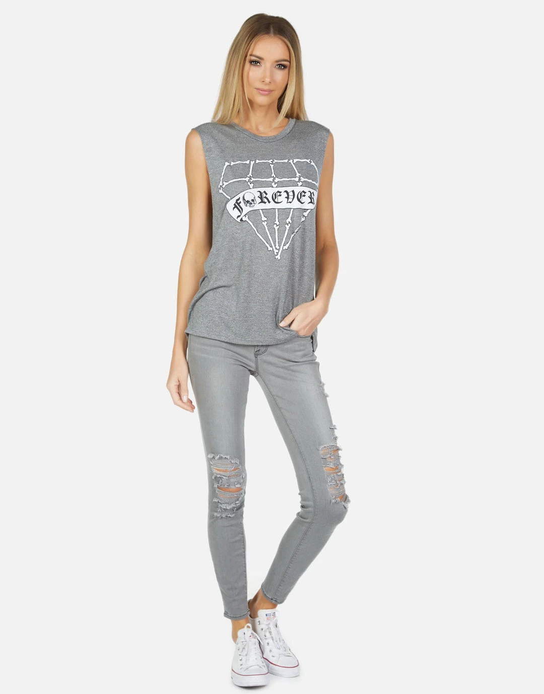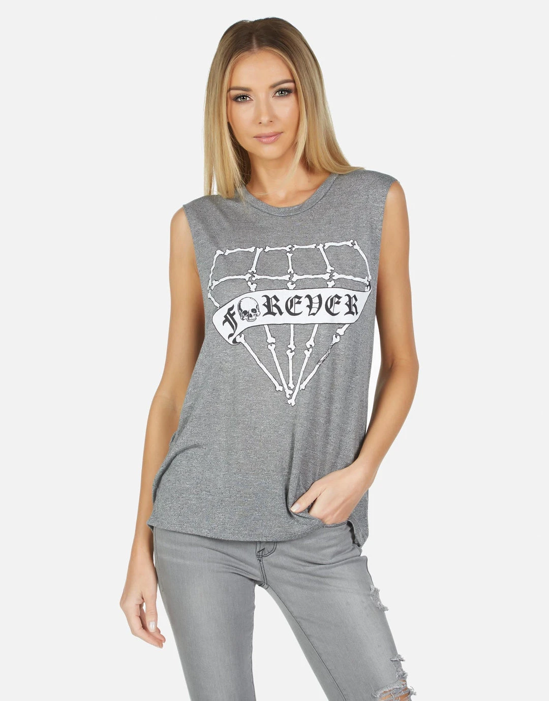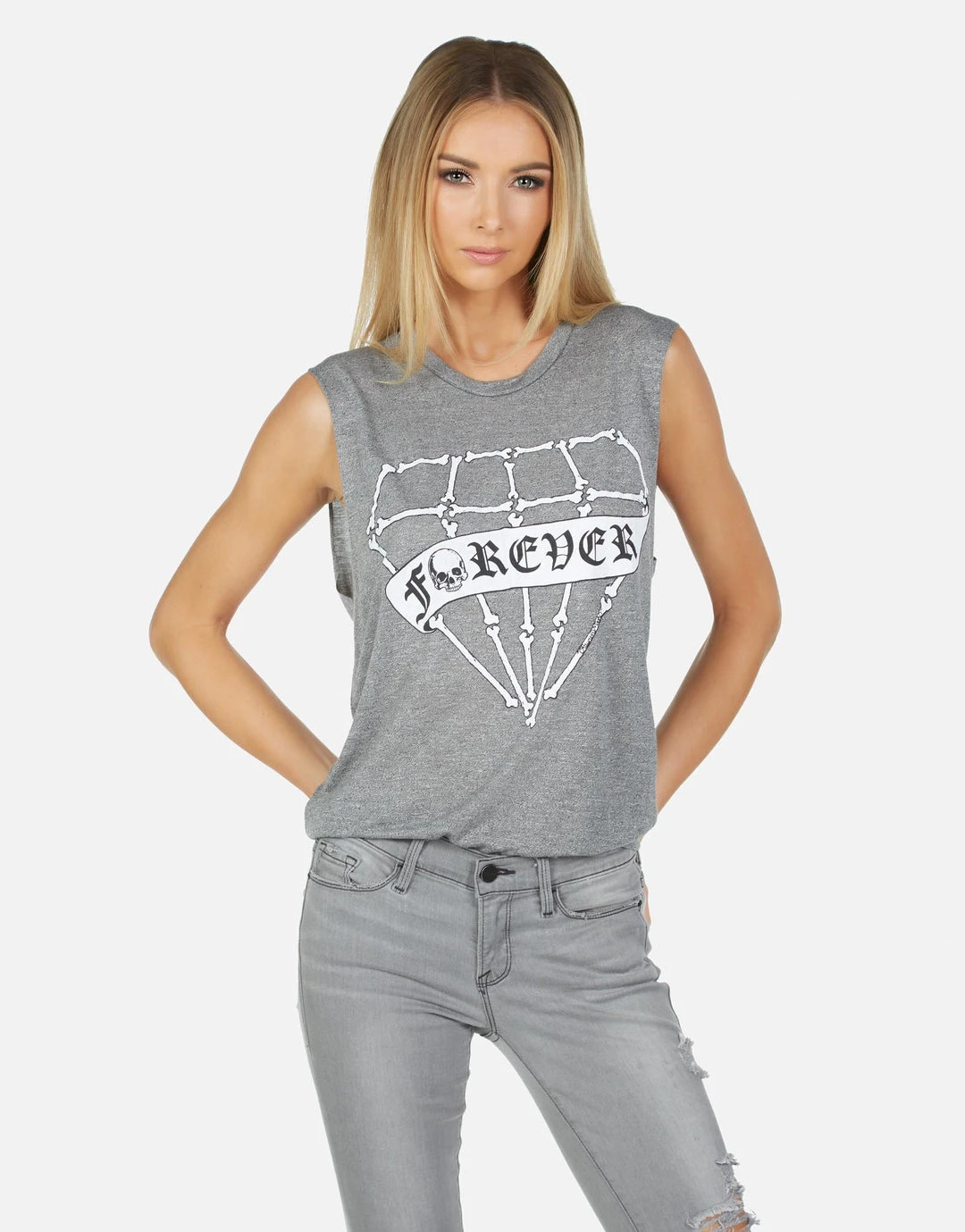 Bone DiamondPrinted on Ultra Soft Lightweight Tank in Heather Grey by Lauren Moshi.