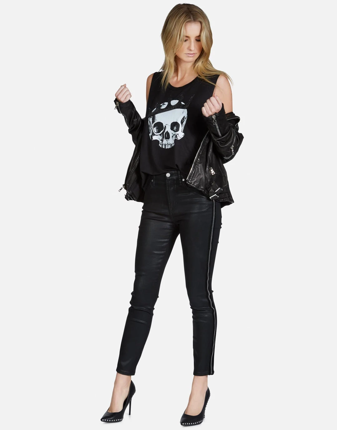 Crystal Royal Skull Printed on Ultra Soft Lightweight Tank in Black by Lauren Moshi.