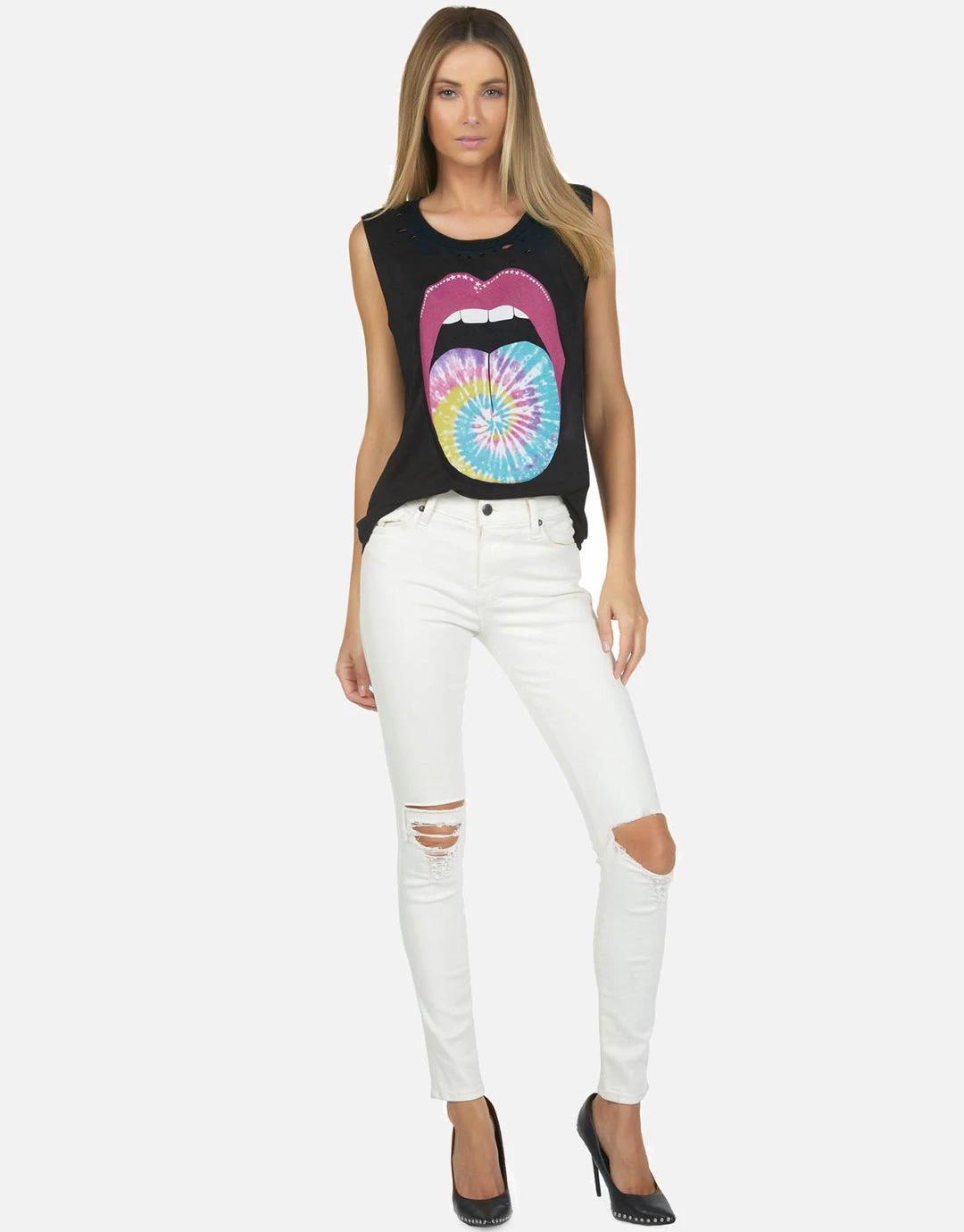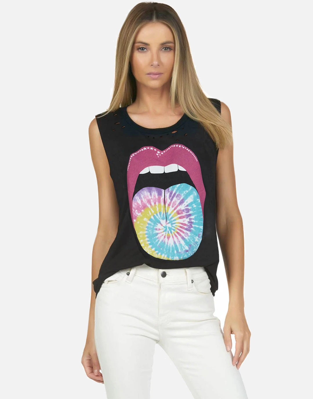 Tie Dye Tongue Printed on Ultra Soft Lightweight Tank in Onyx by Lauren Moshi.