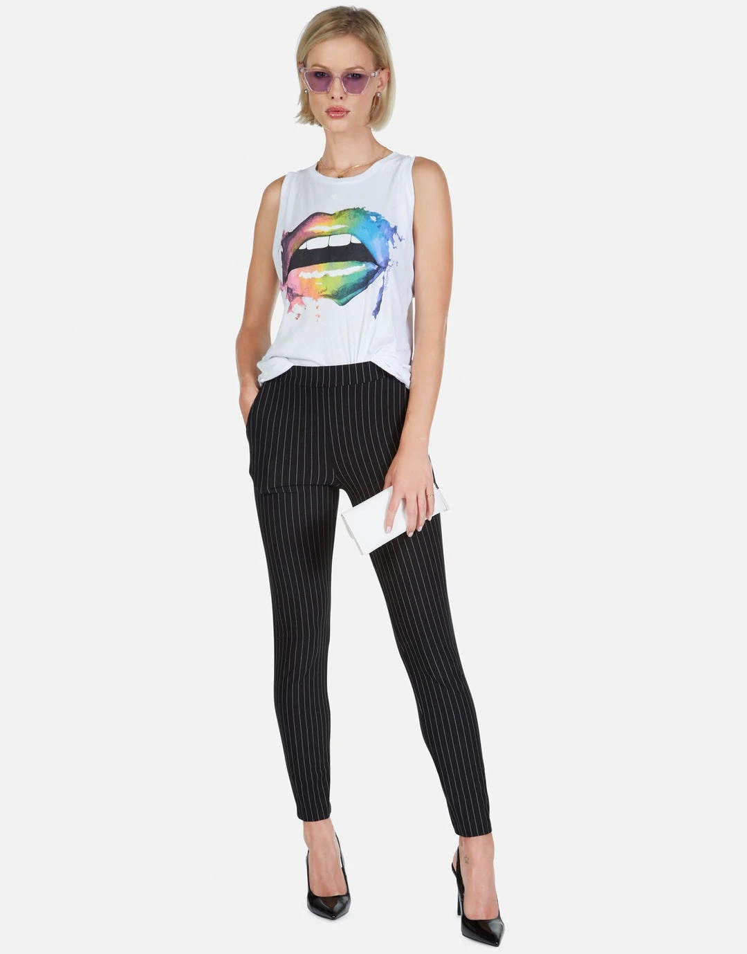Rainbow Smudge Lip Printed on Ultra Soft Lightweight High Neck Tank by Lauren Moshi.