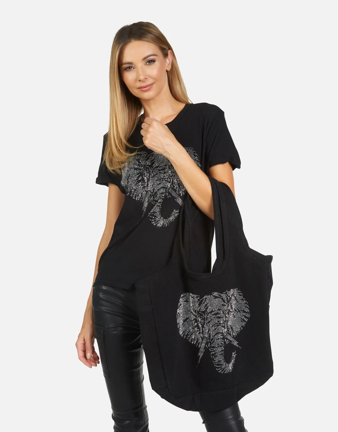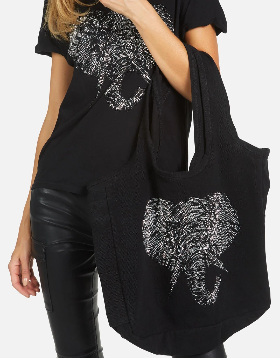 Electric Elephant on Heavyweight Canvas Tote Bag in Black by Lauren Moshi.