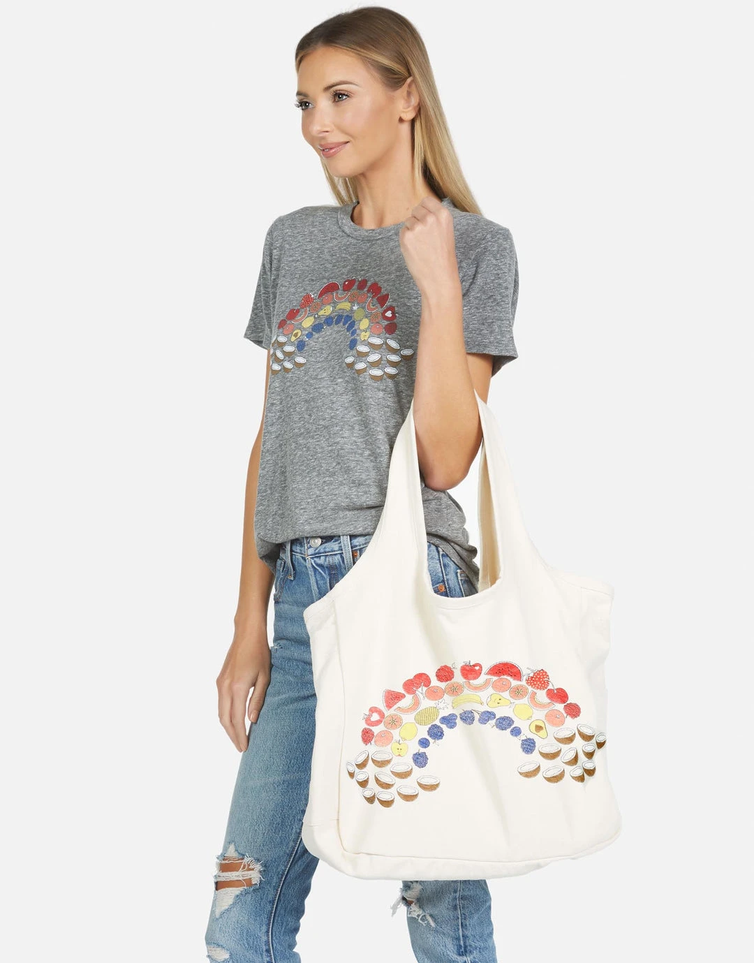 Fruit Rainbow Printed on Ultra Soft Lightweight Tote Bag in Natural by Lauren Moshi.