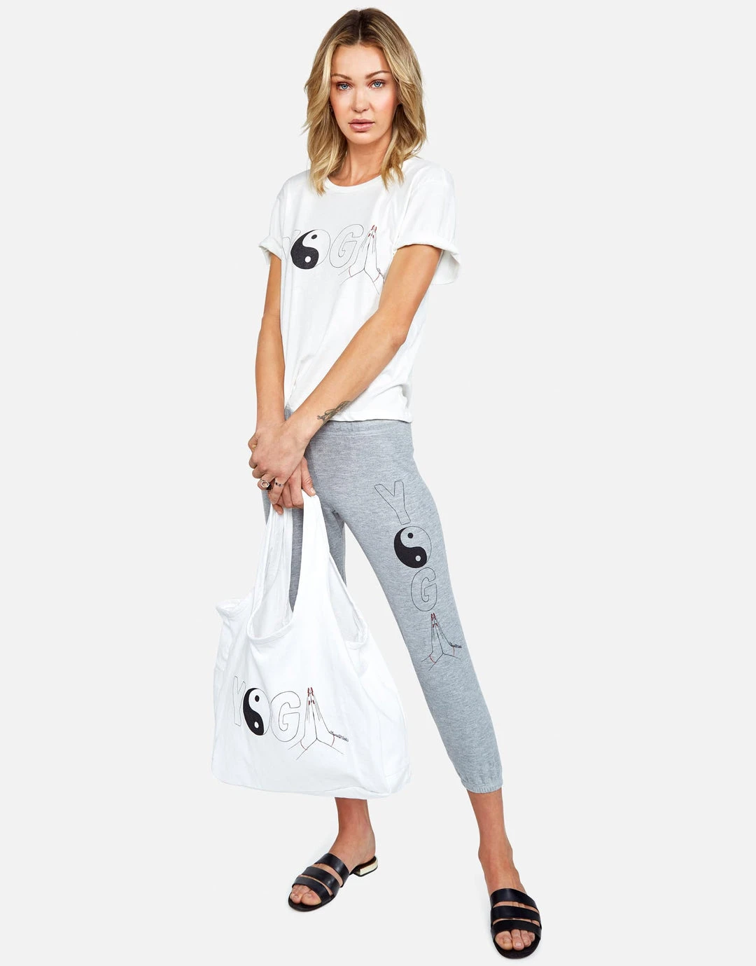 Yoga Prayer Printed on Canvas Tote Bag in White by Lauren Moshi.