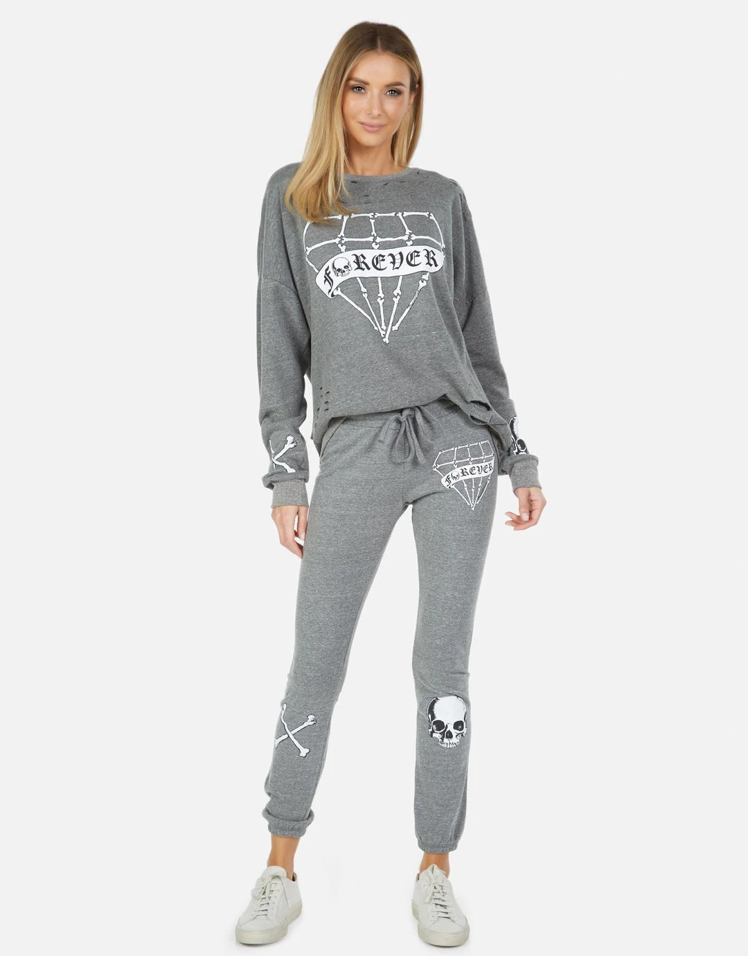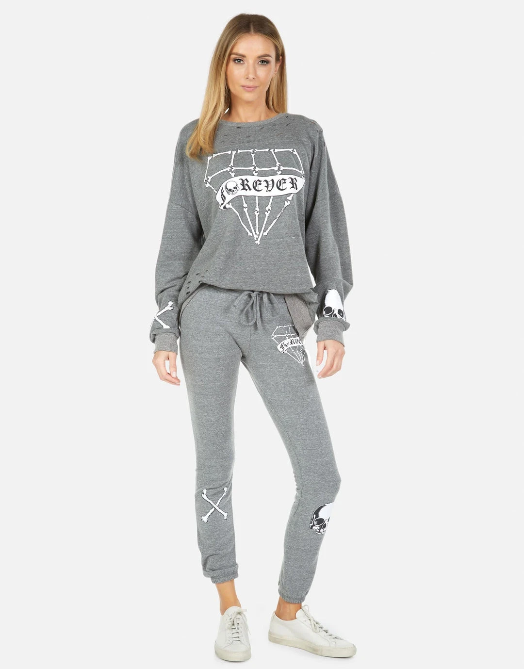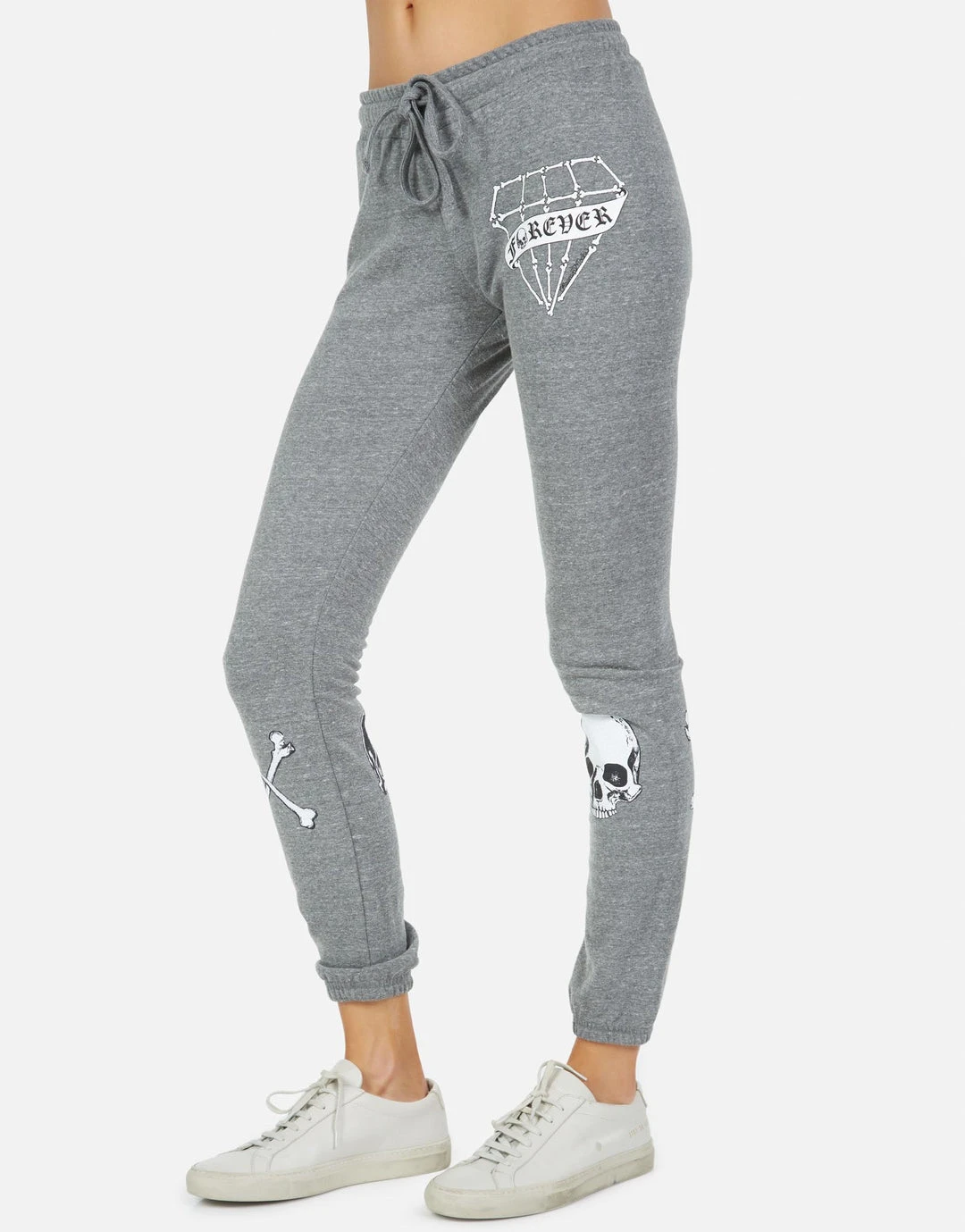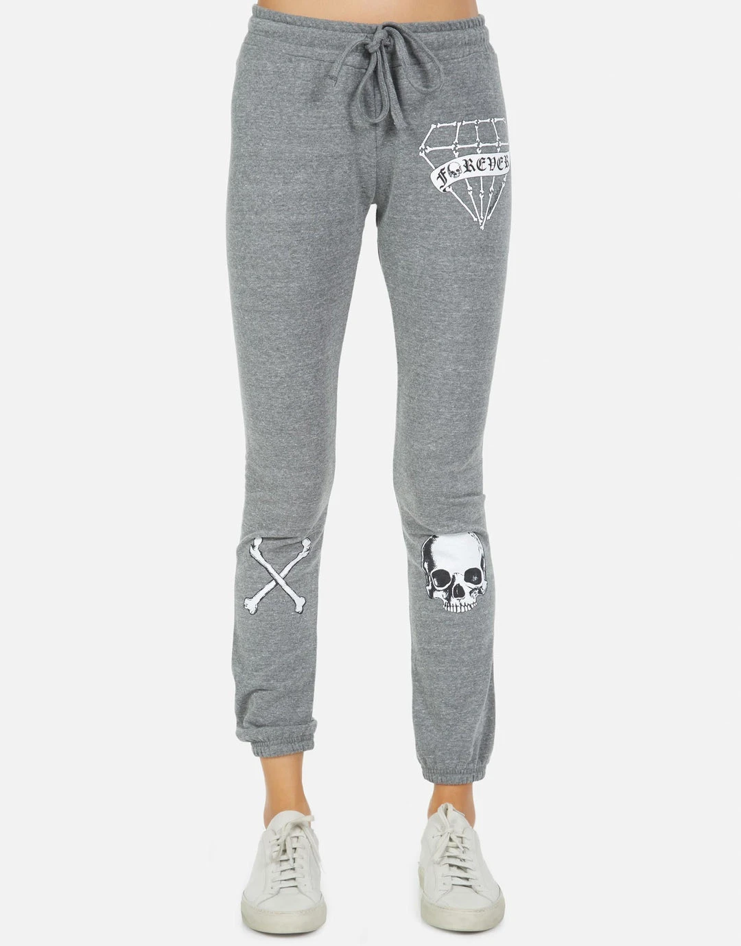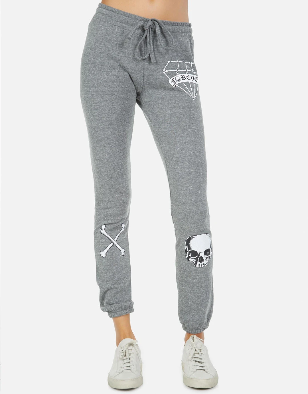 Bone Diamond Printed on Ultra Soft Lightweight Sweatpant in Heather Grey by Lauren Moshi.