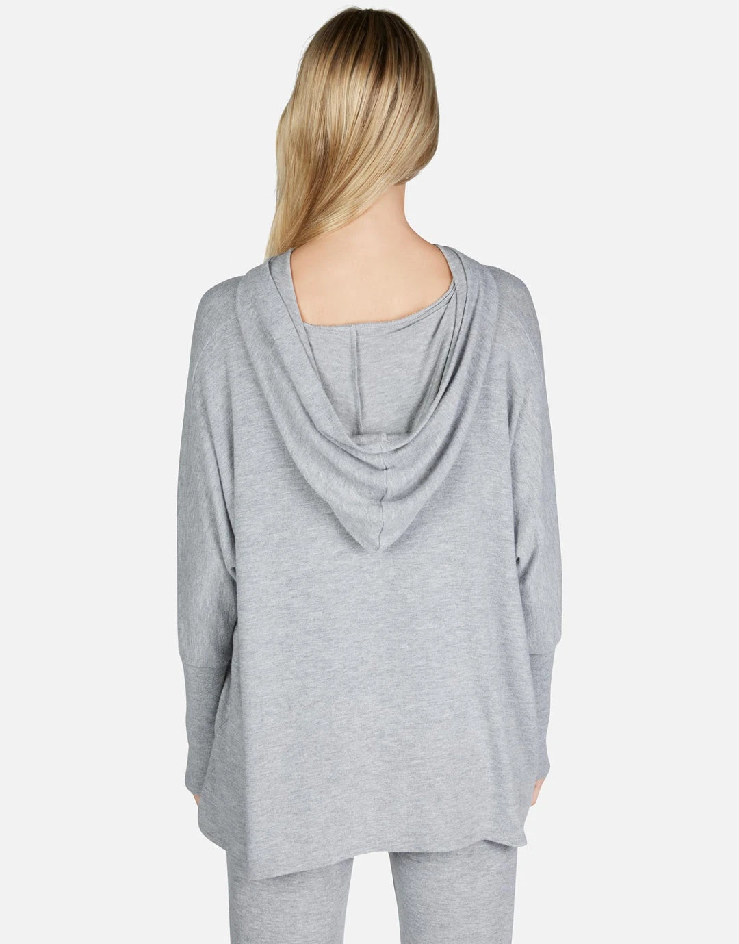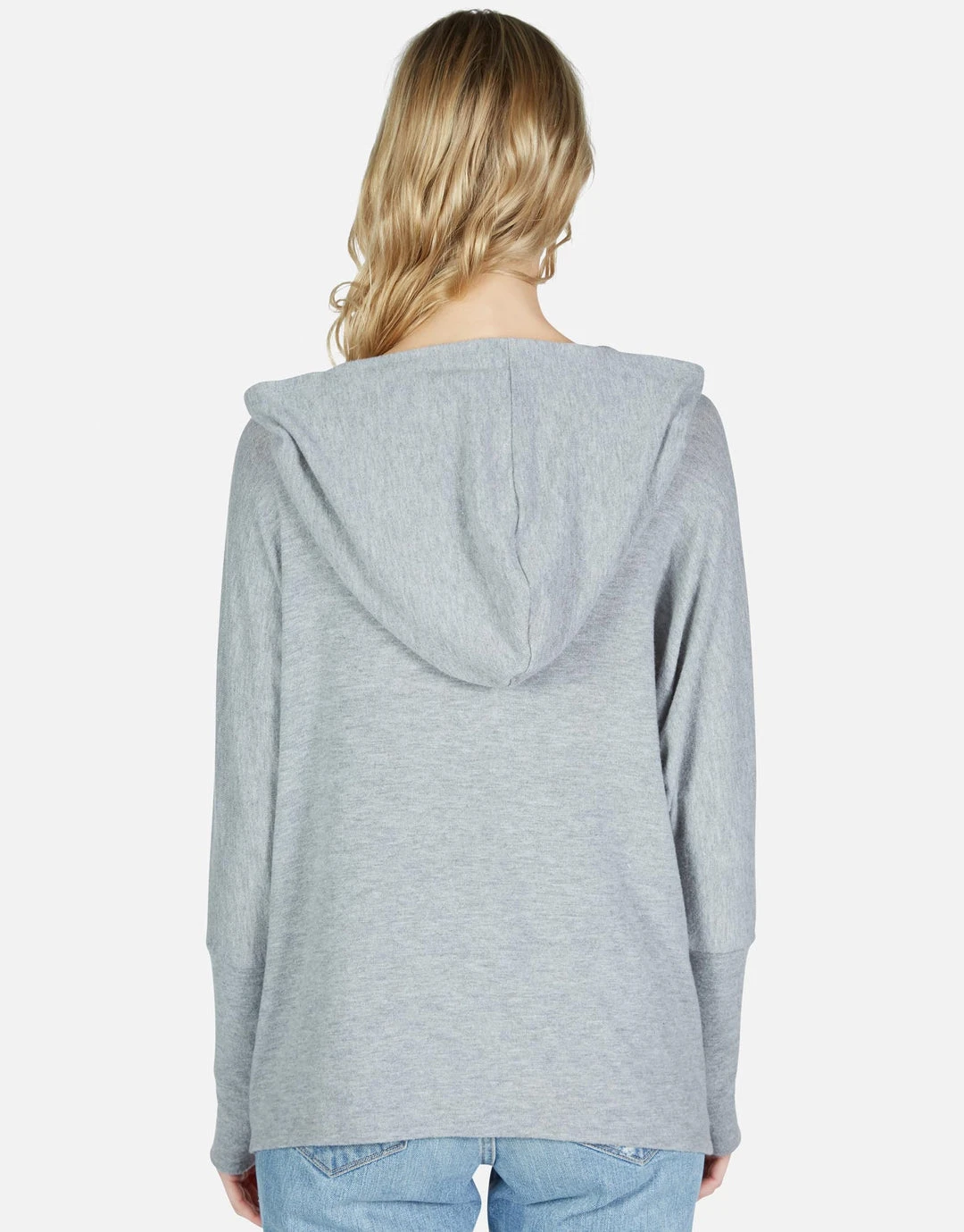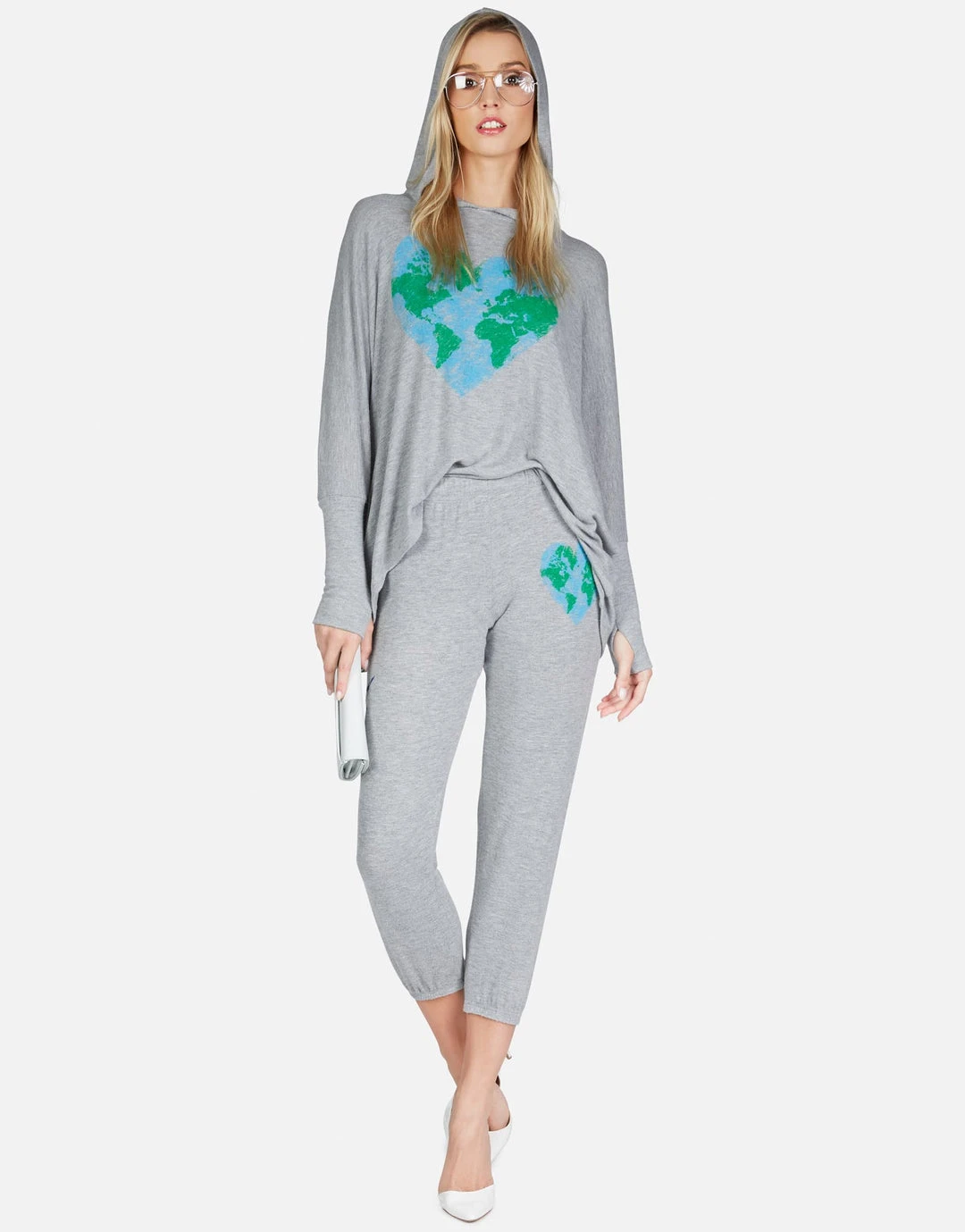 World Love Printed on Ultra Soft Lightweight Hoodie in Heather Grey by Lauren Moshi.