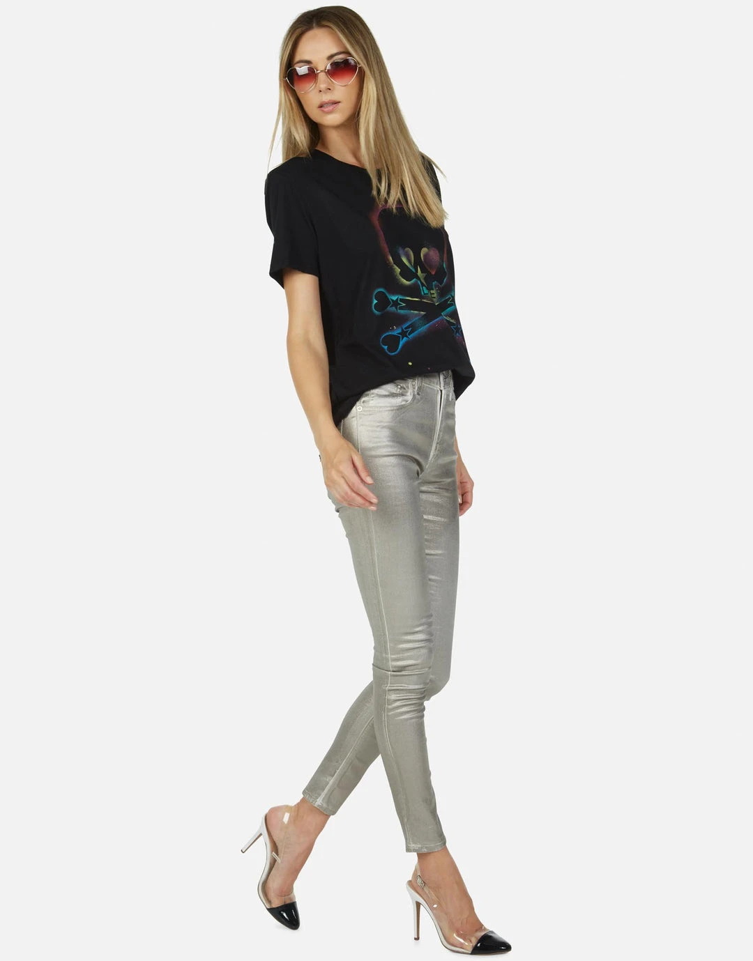 Spray Love Skull Printed on Ultra Soft Lightweight Tee in Black by Lauren Moshi.