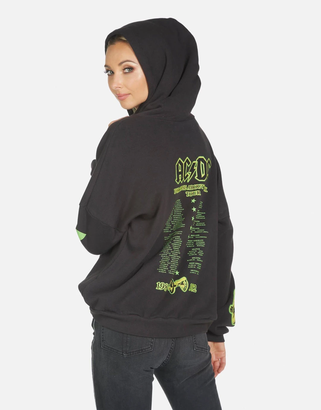 AC/DC Printed on Ultra Soft Lightweight Hoodie in Onyx by Lauren Moshi.