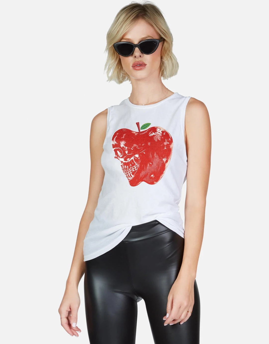 WEB EXCLUSIVE | Skull Apple Printed on Ultra Soft Lightweight Tank in White by Lauren Moshi.