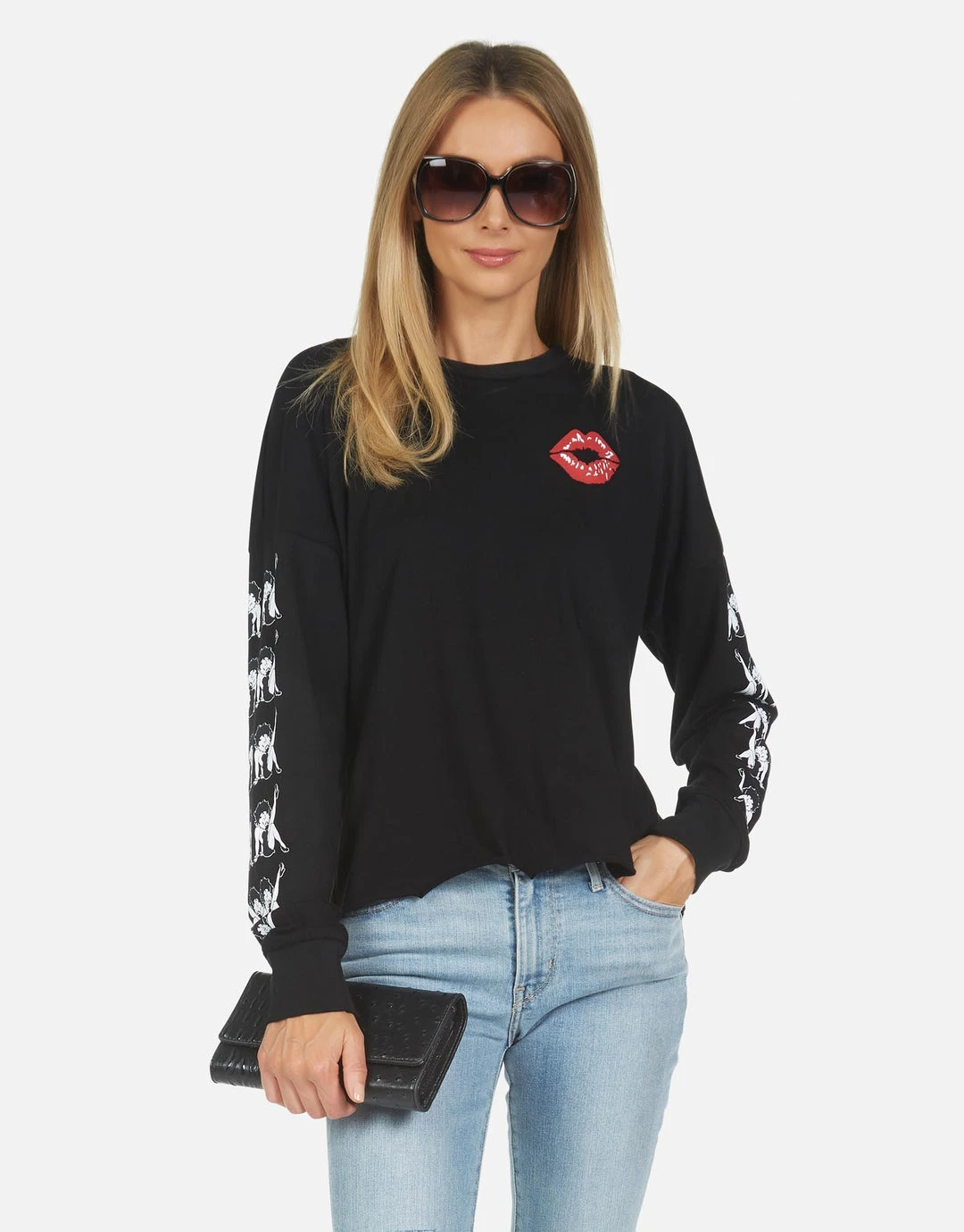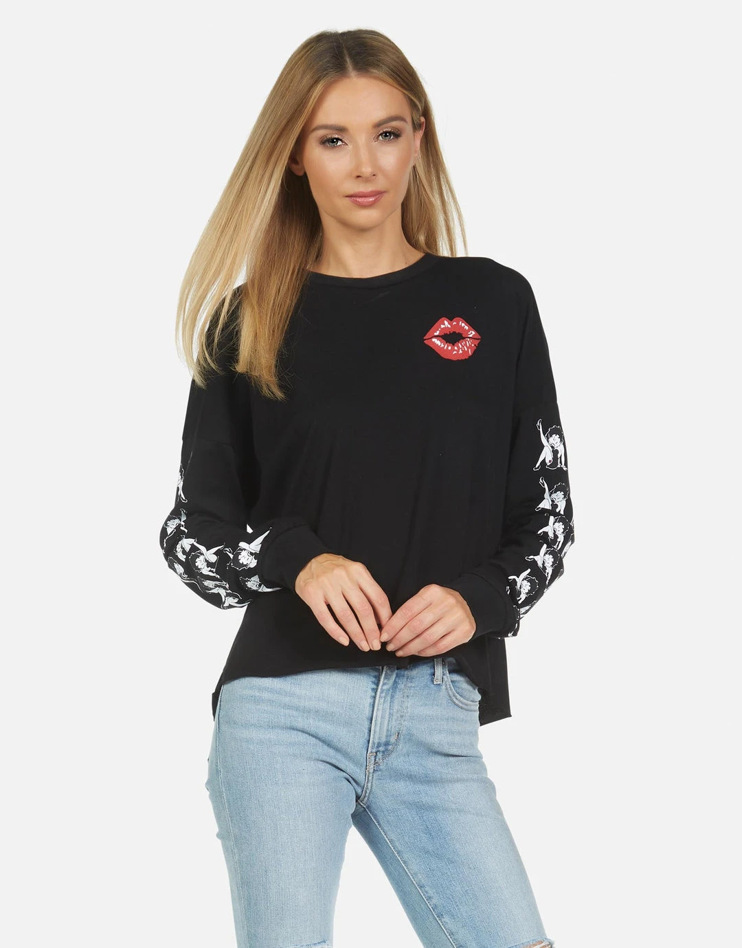 Betty Boop Printed on Ultra Soft Lightweight Tee in Black by Lauren Moshi.