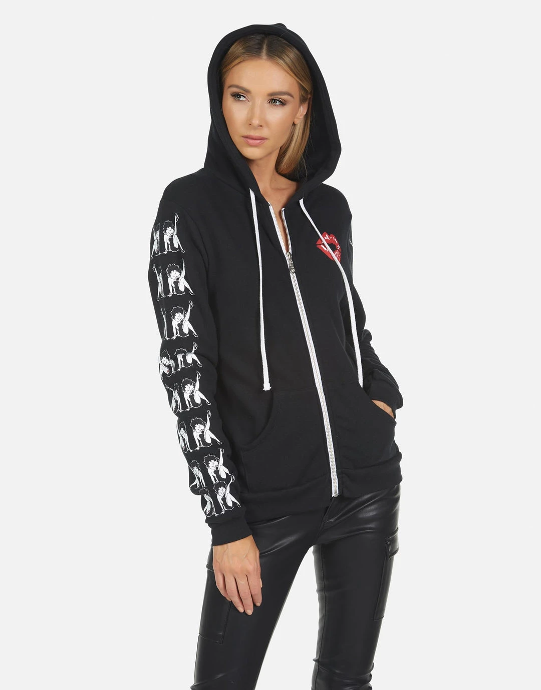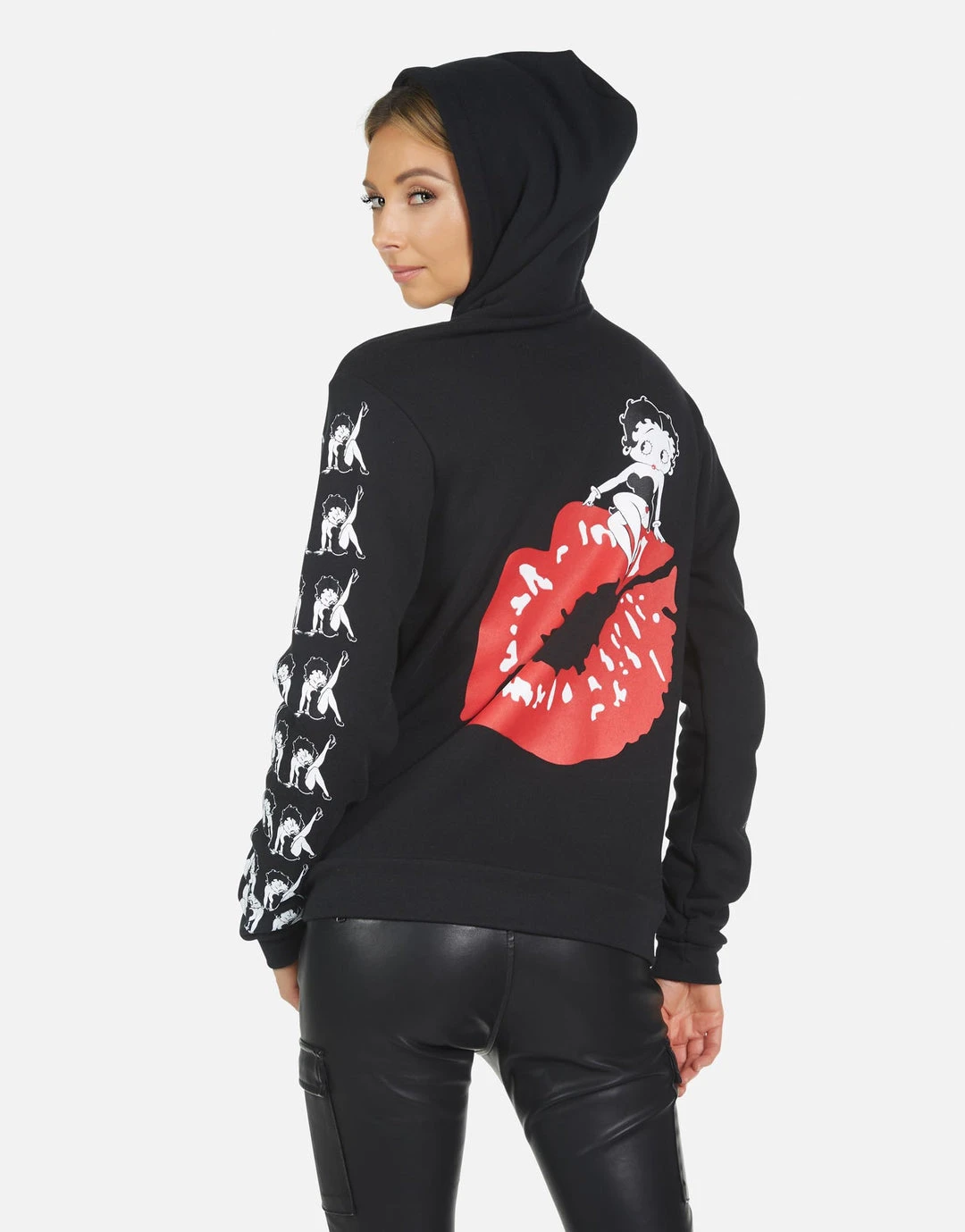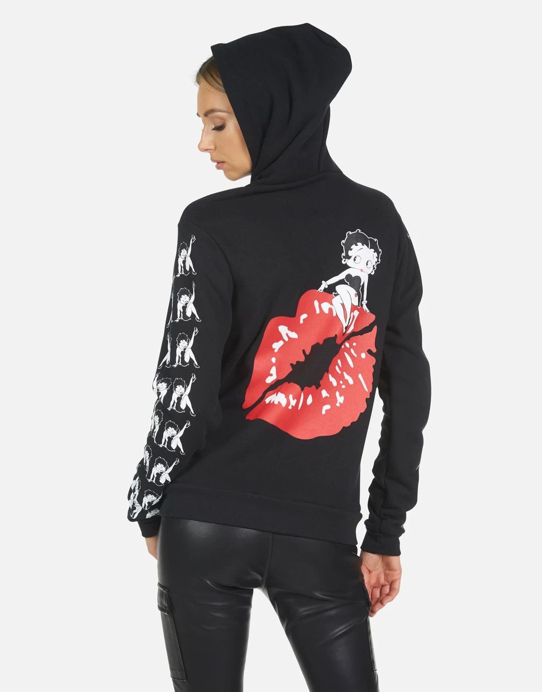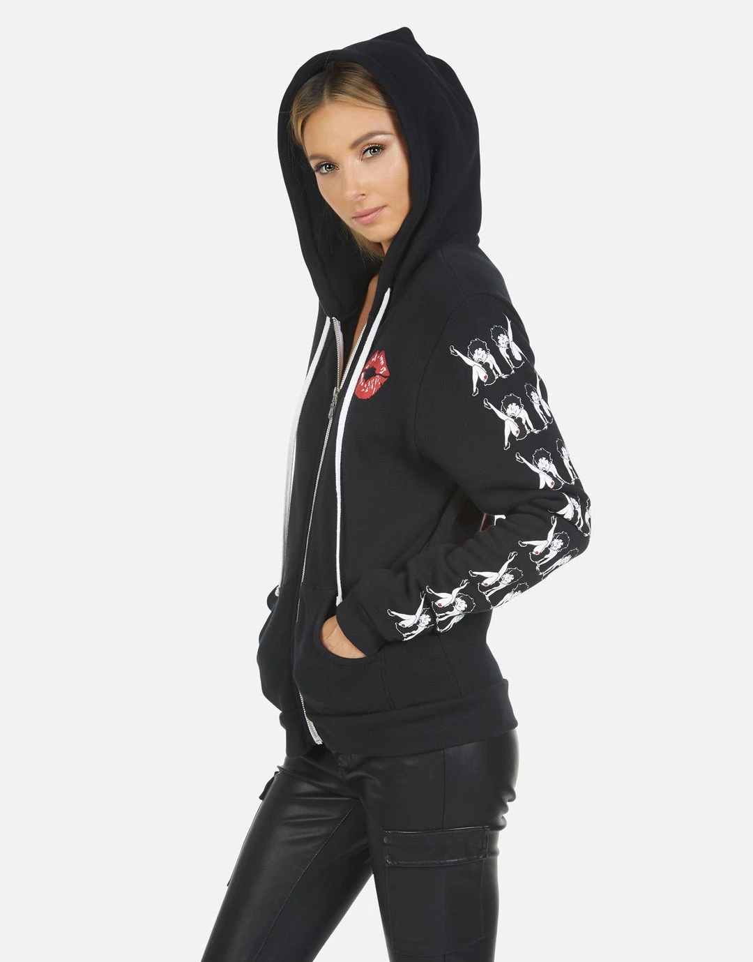 Betty Boop Printed on Ultra Soft Lightweight Hoodie in Black by Lauren Moshi.
