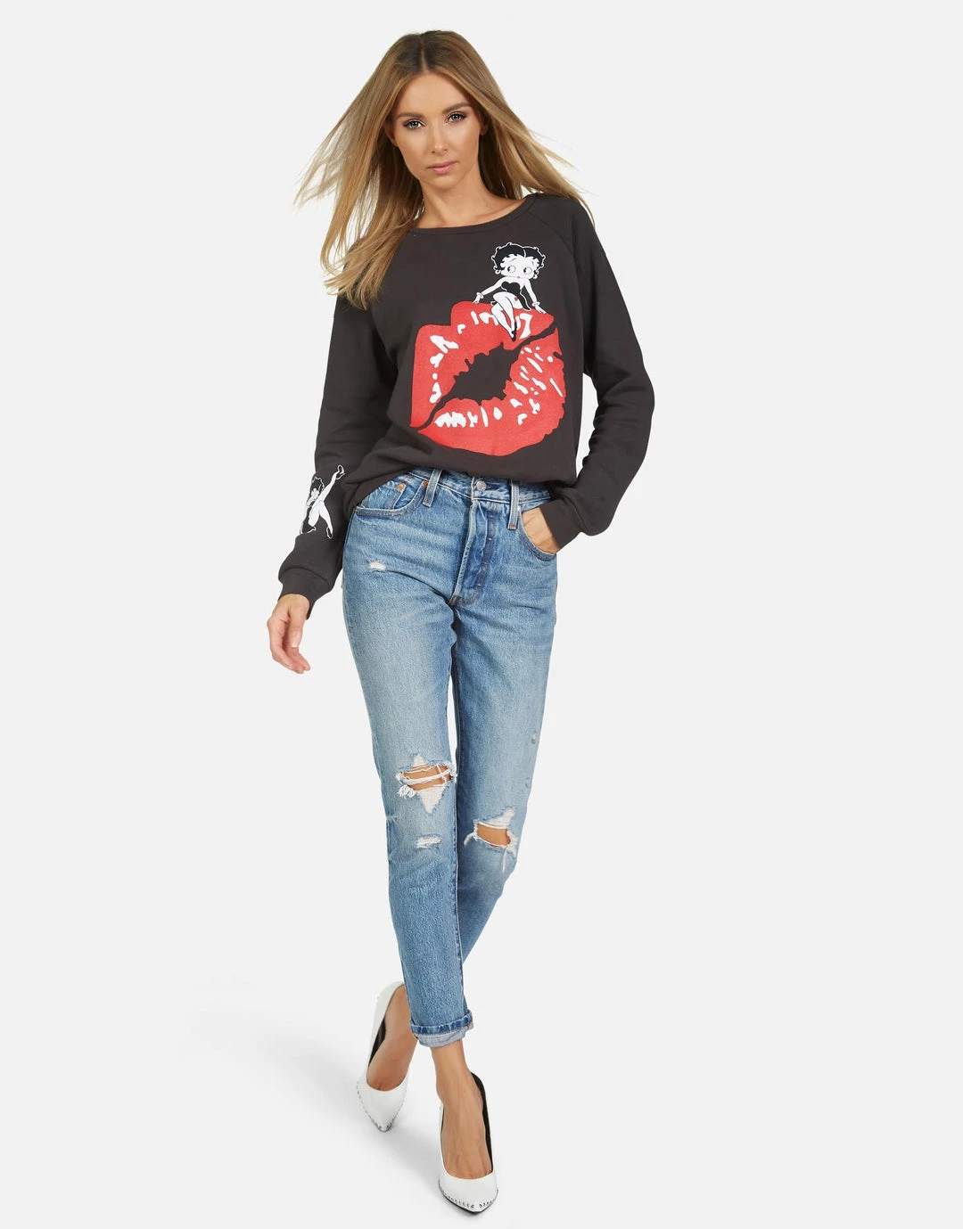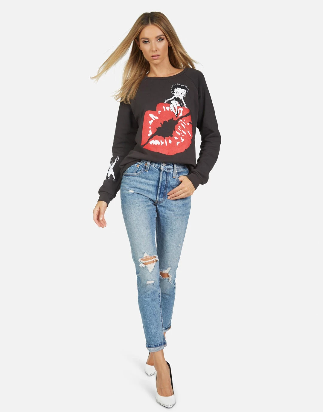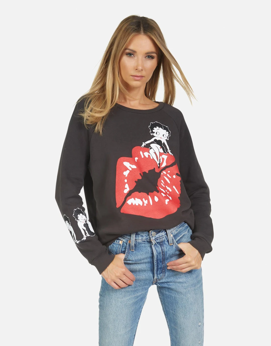 Betty Boop Printed on Ultra Soft Lightweight Pullover in Onyx by Lauren Moshi.