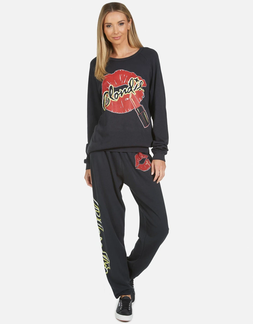Blondie Kiss Printed on Ultra Soft Lightweight Pullover in Onyx by Lauren Moshi.