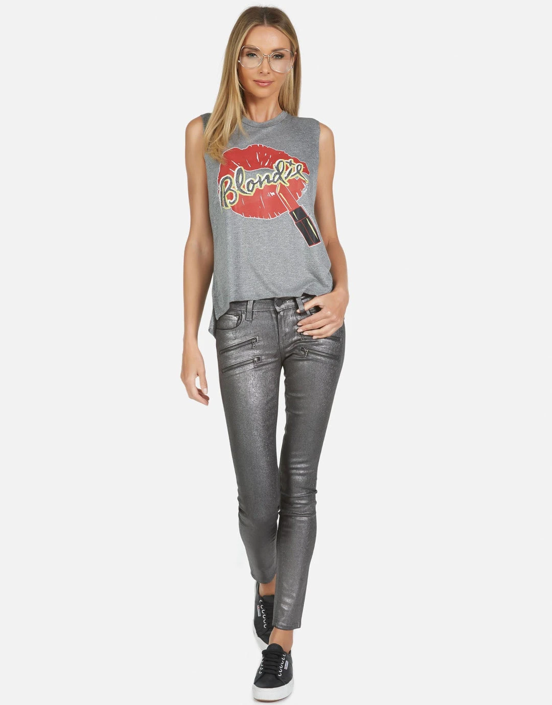 Blondie Kiss Printed on Ultra Soft Lightweight Tee in Heather Grey by Lauren Moshi.