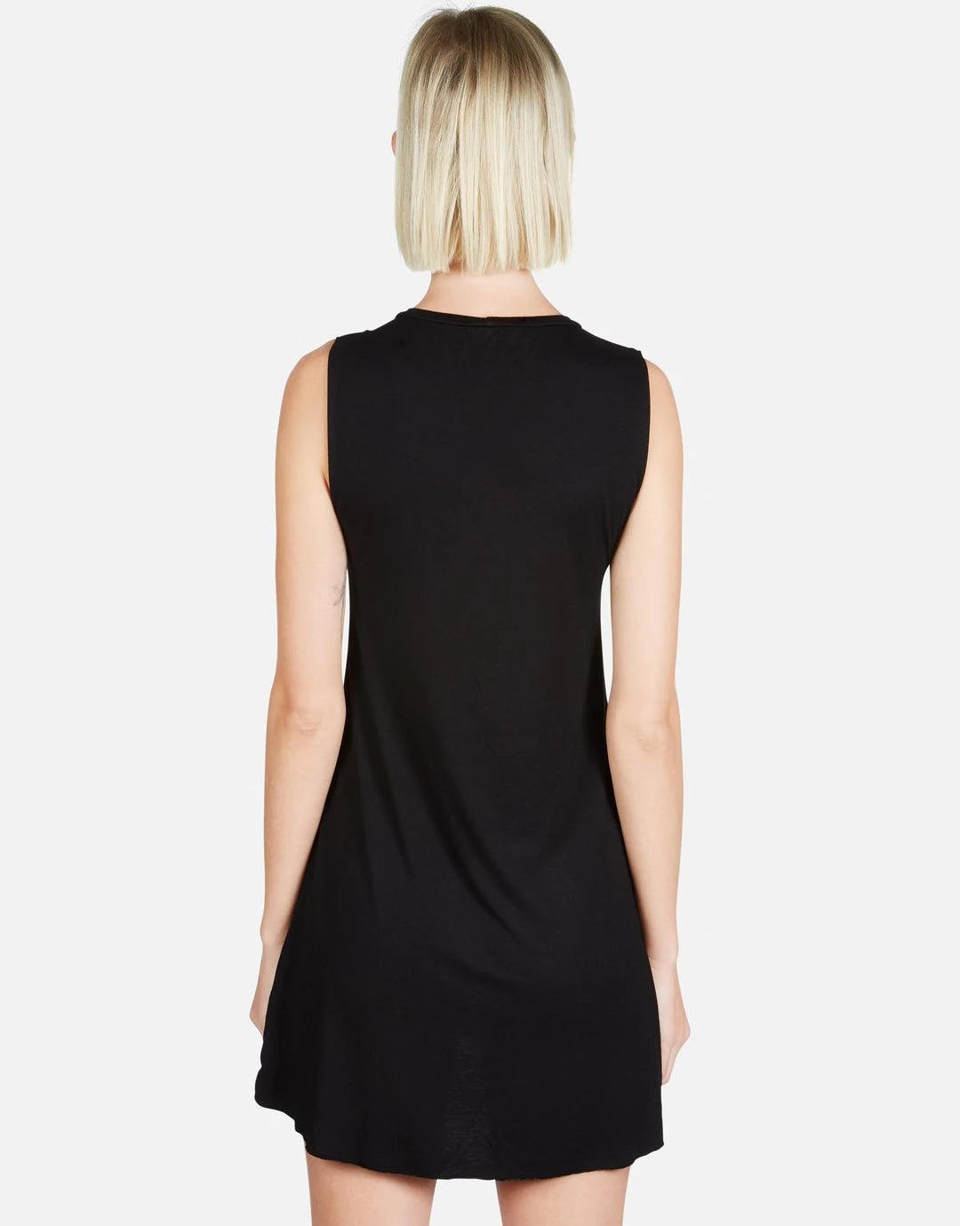 WEB EXCLUSIVE | Skull Eye Happyface Printed on Ultra Soft Lightweight Mini Dress in Black by Lauren Moshi.