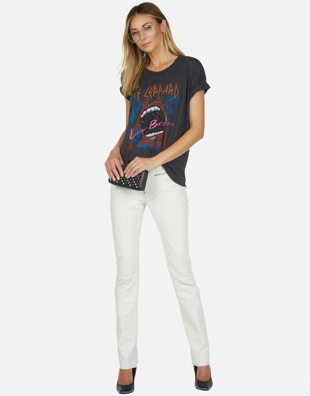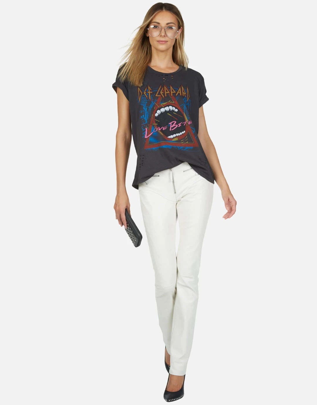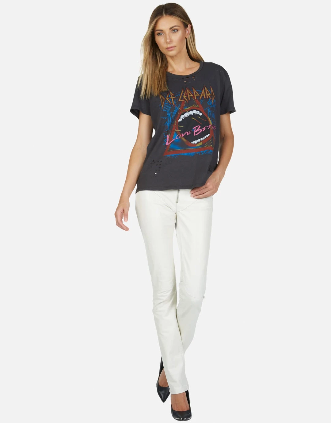 Def Leppard Love Bites Printed on Ultra Soft Lightweight Tee in Onyx by Lauren Moshi.