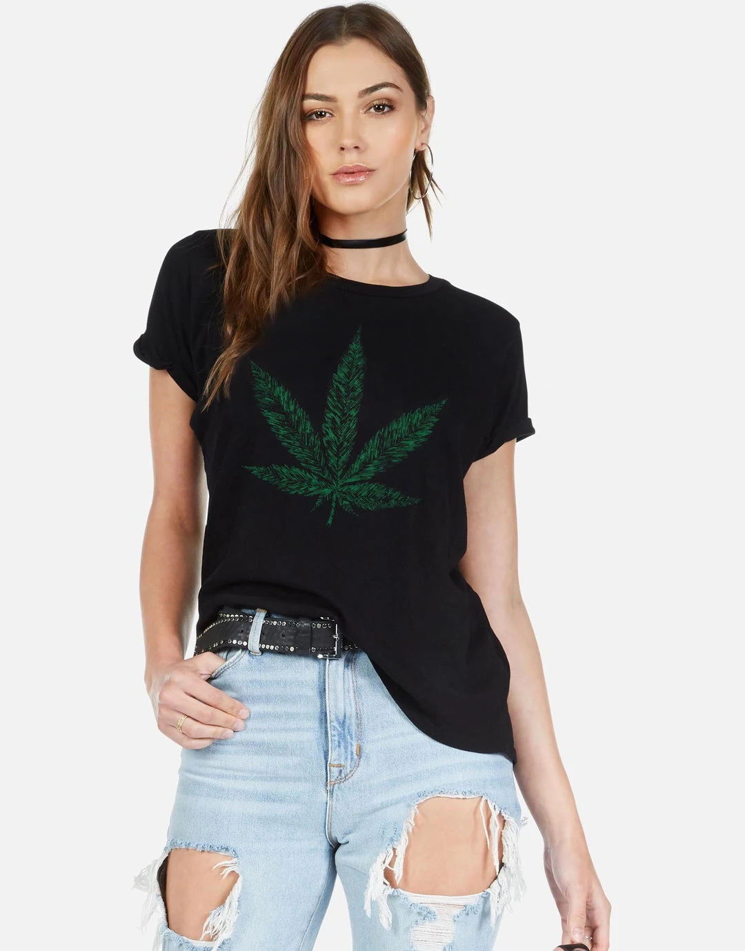 WEB EXCLUSIVE | Pot Leaf Printed on Ultra Soft Lightweight Tee by Lauren Moshi.