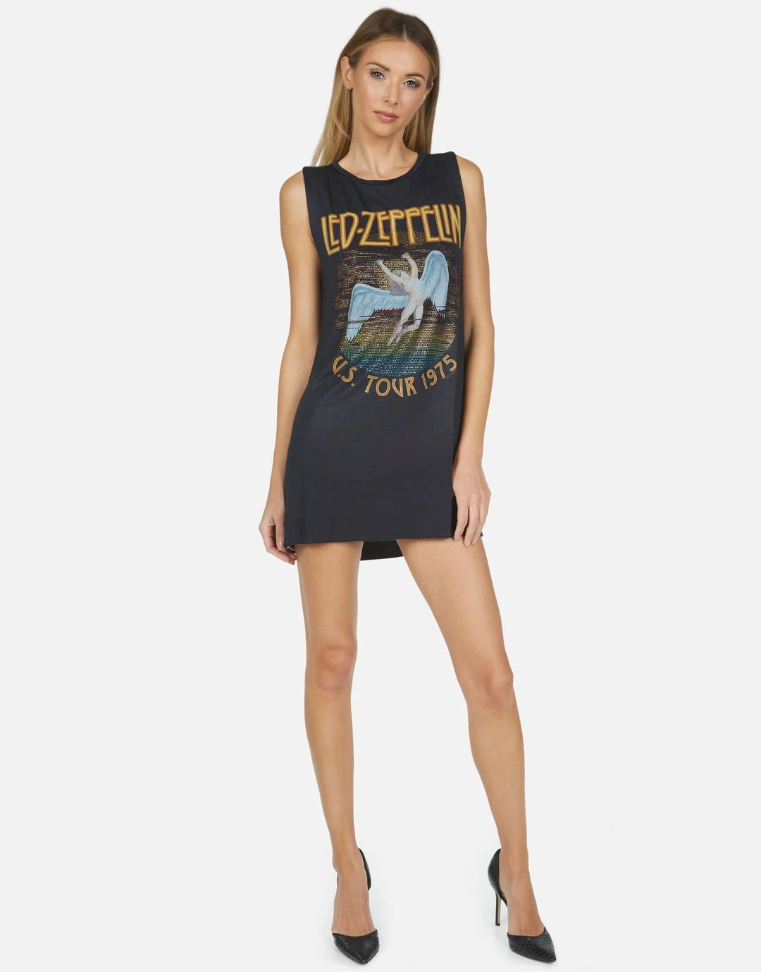 Led Zeppelin Printed on Ultra Soft Lightweight Mini Dress in Onyx by Lauren Moshi.