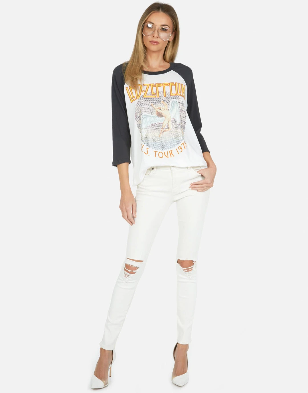 Led Zeppelin Printed on Ultra Soft Lightweight Baseball Tee in Milk/ Onyx by Lauren Moshi.