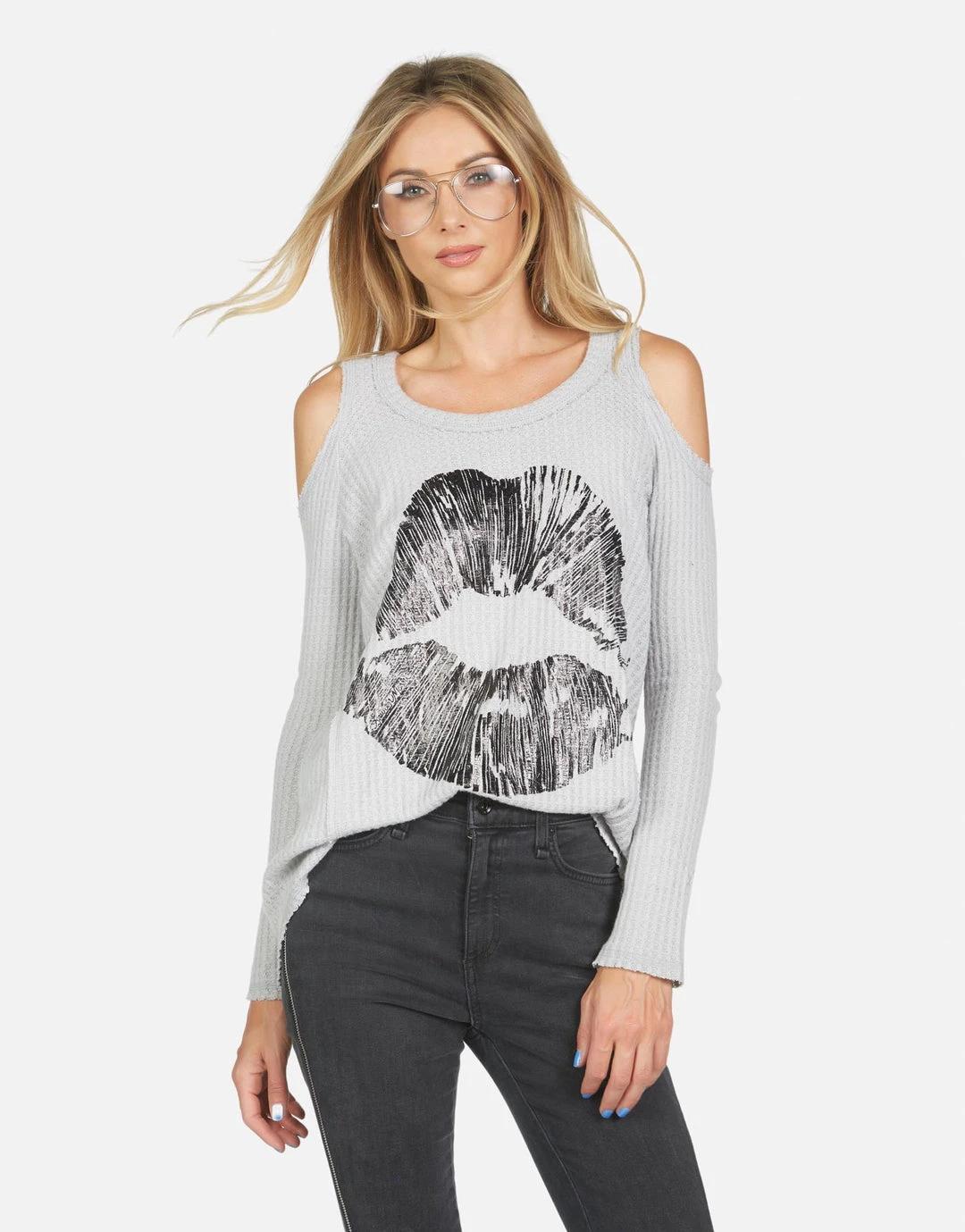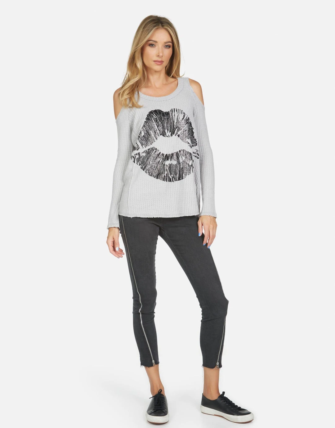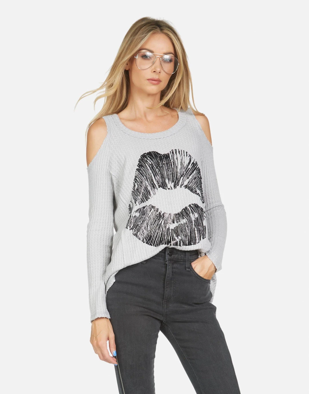 WEB EXCLUSIVE | Vinyl Lip Printed on Ultra Soft Lightweight Thermal in Heather Grey by Lauren Moshi.