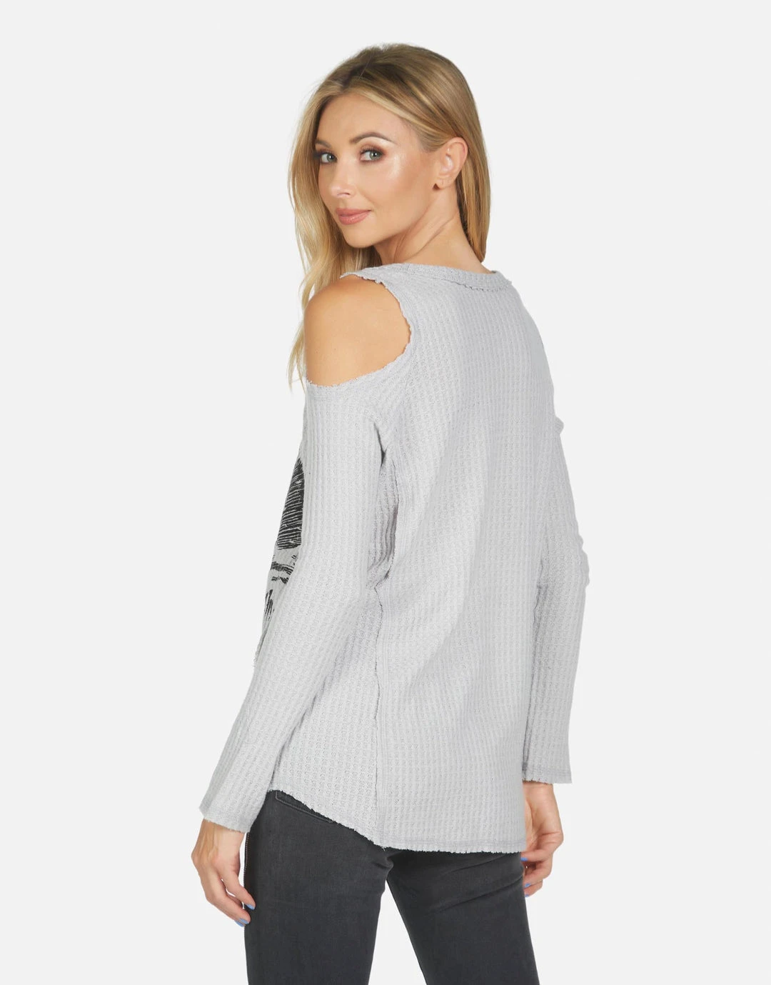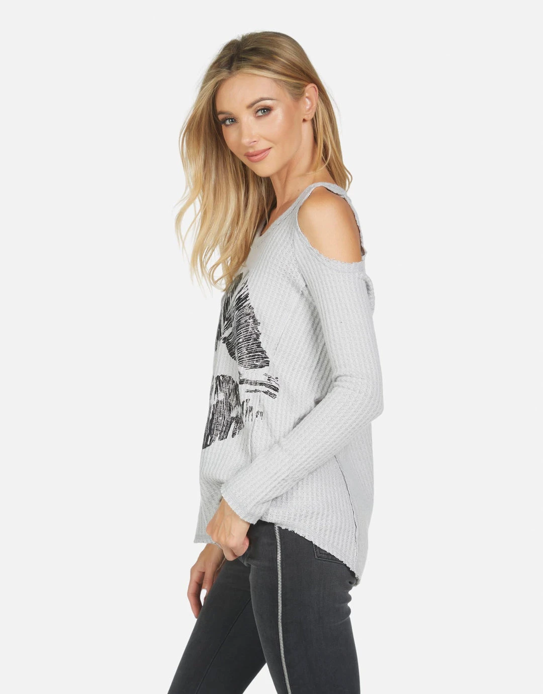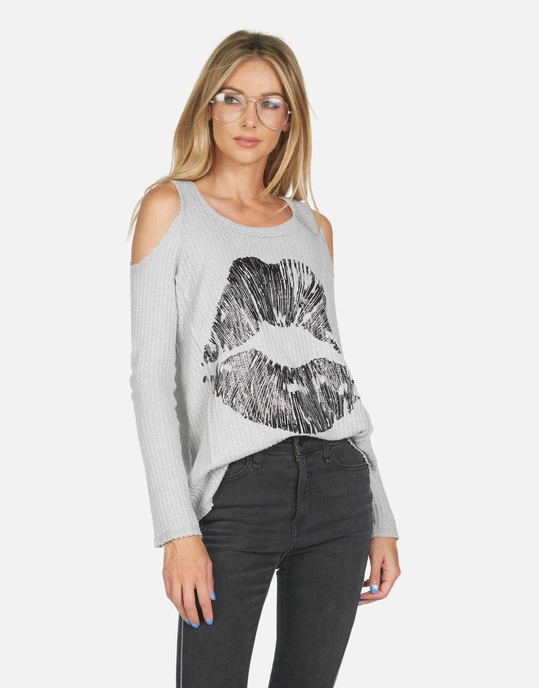 WEB EXCLUSIVE | Vinyl Lip Printed on Ultra Soft Lightweight Thermal in Heather Grey by Lauren Moshi.