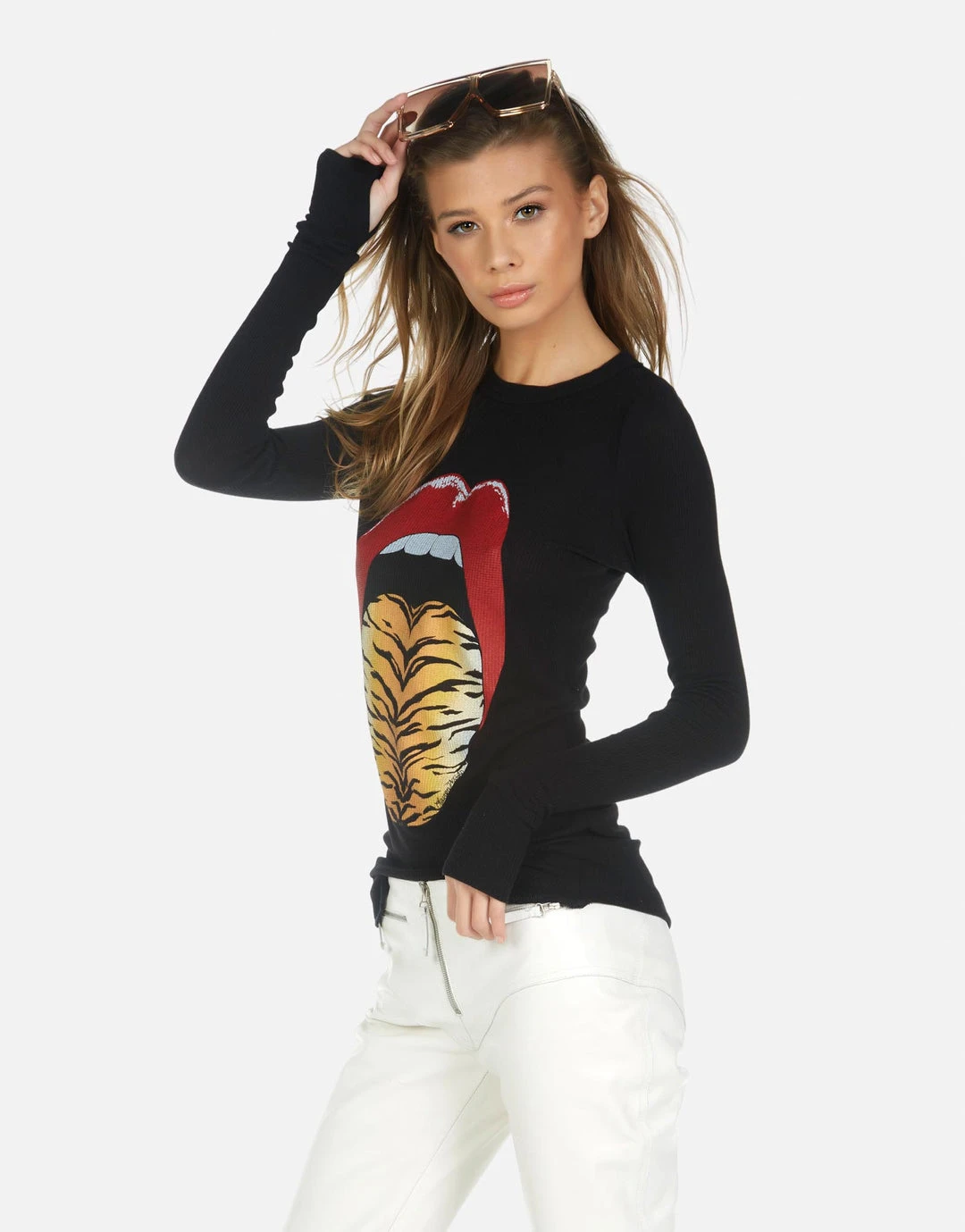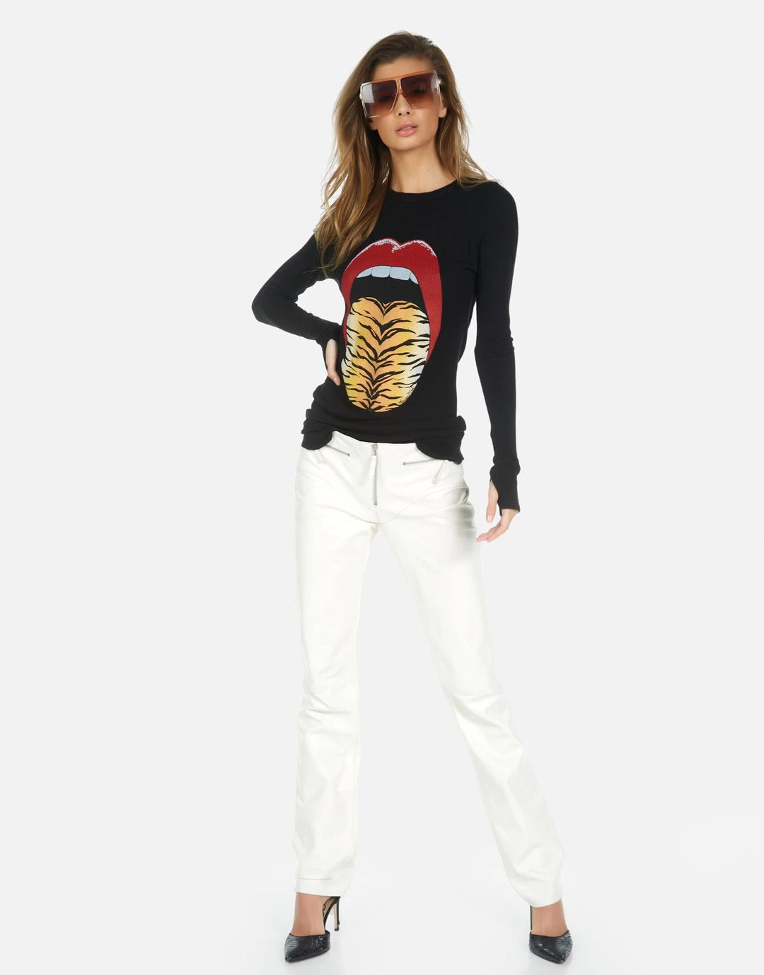 WEB EXCLUSIVE | Tiger Tongue Printed on Ultra Soft Lightweight Thermal in Black by Lauren Moshi.
