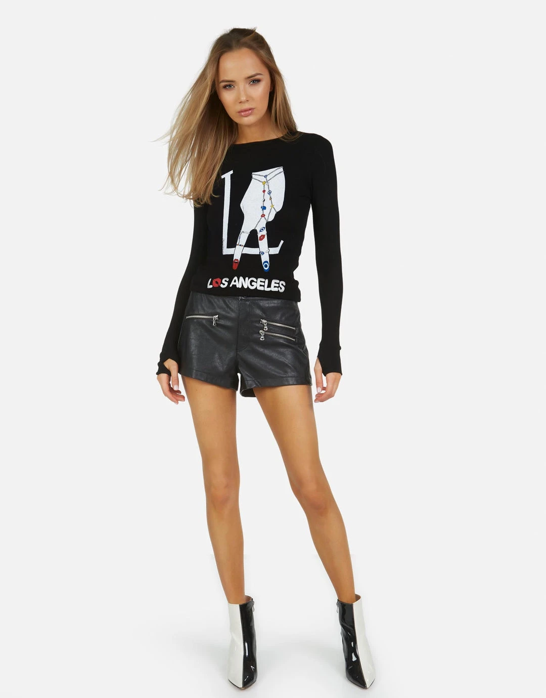 WEB EXCLUSIVE | LA Hand Elements Printed on Ultra Soft Lightweight Thermal in Black by Lauren Moshi.