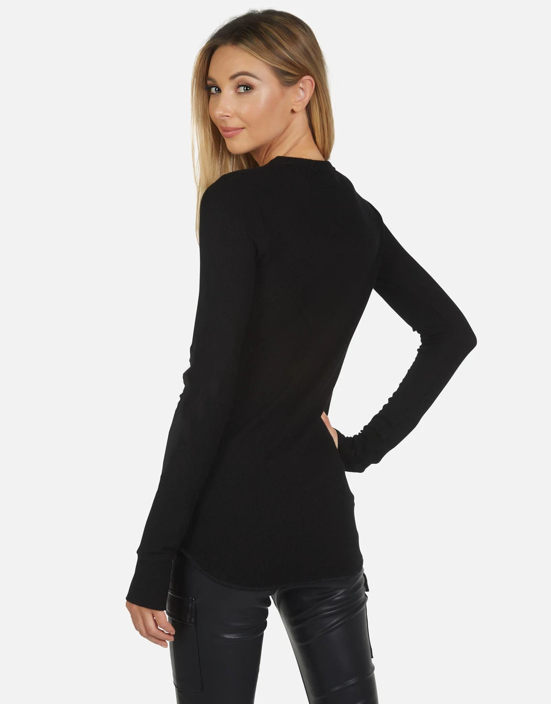 WEB EXCLUSIVE | Scribble Lip Printed on Ultra Soft Lightweight Thermal in Black by Lauren Moshi.