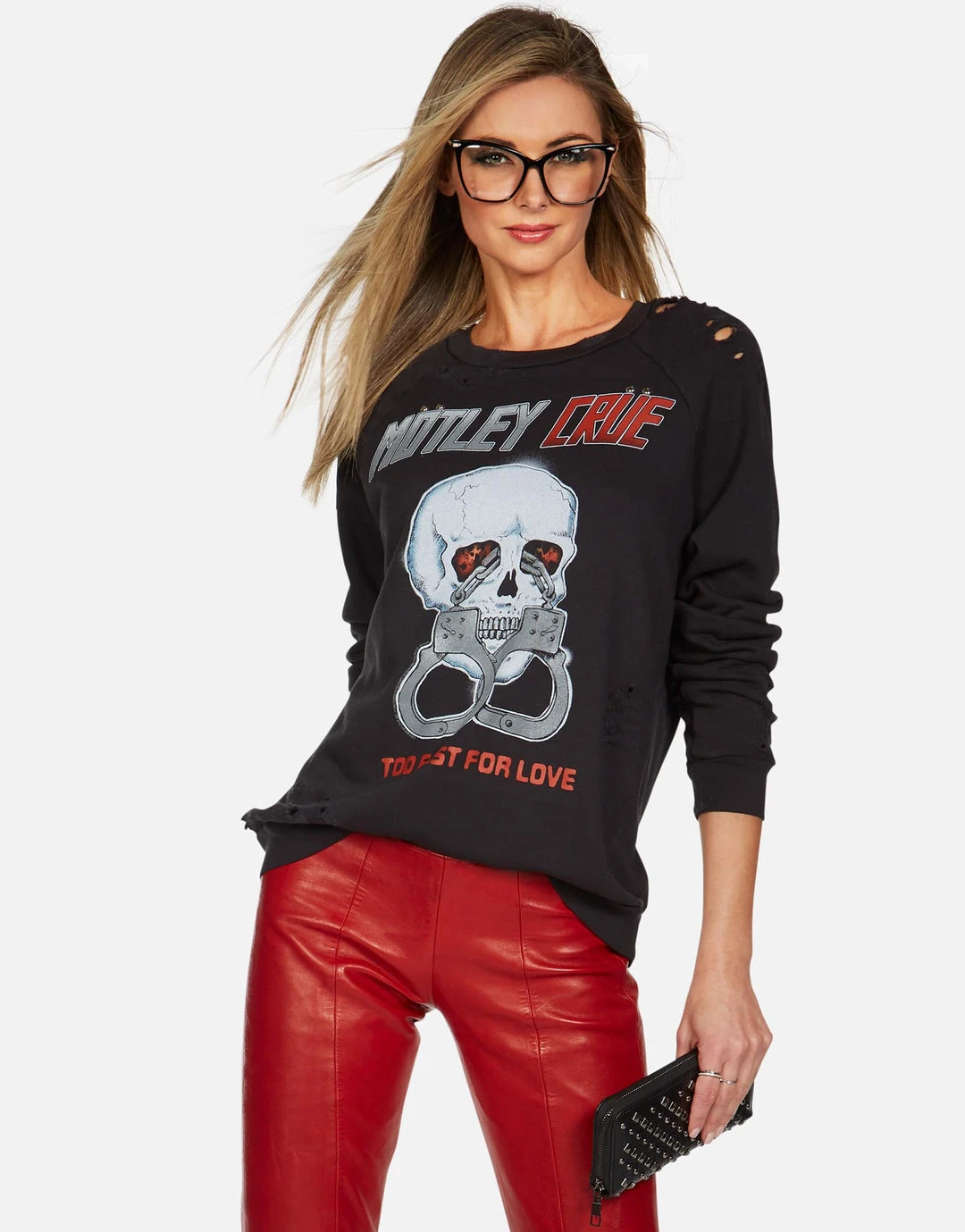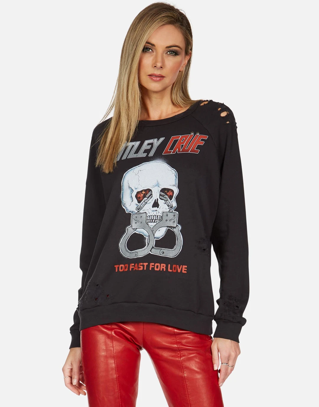 WEB EXCLUSIVE | Mötley Crüe Too Fast For Love Skull Printed on Ultra Soft Lightweight Pullover in Black by Lauren Moshi.