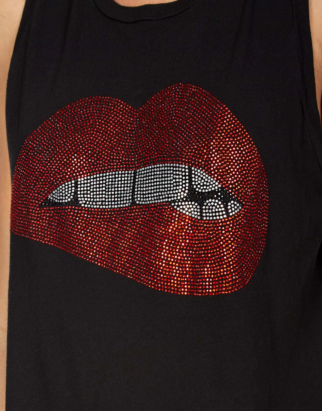 WEB EXCLUSIVE | Crystal Biting Lip on Ultra Soft Lightweight Tank by Lauren Moshi.