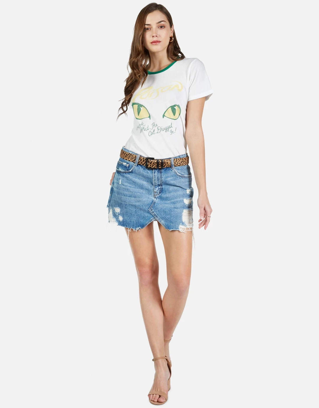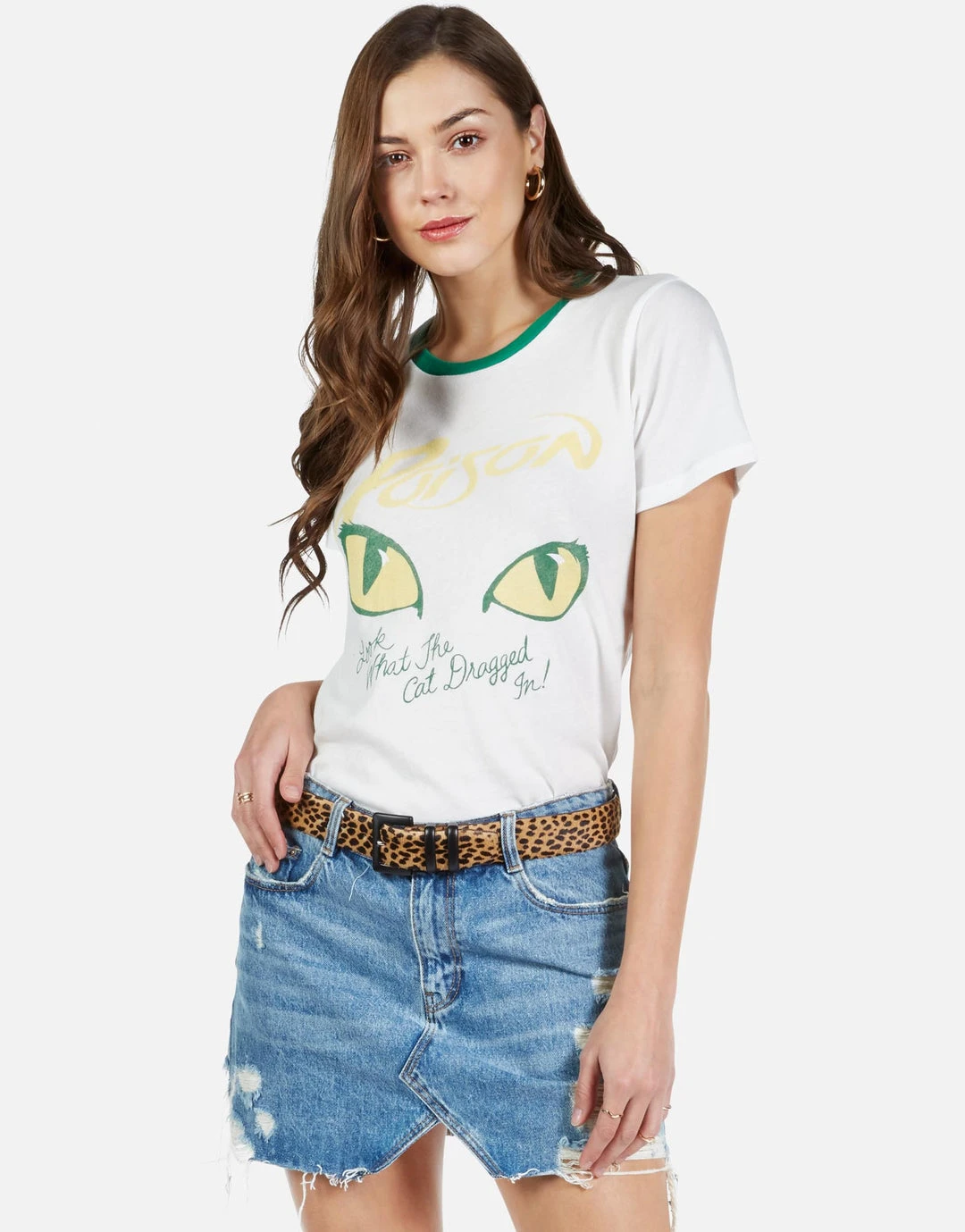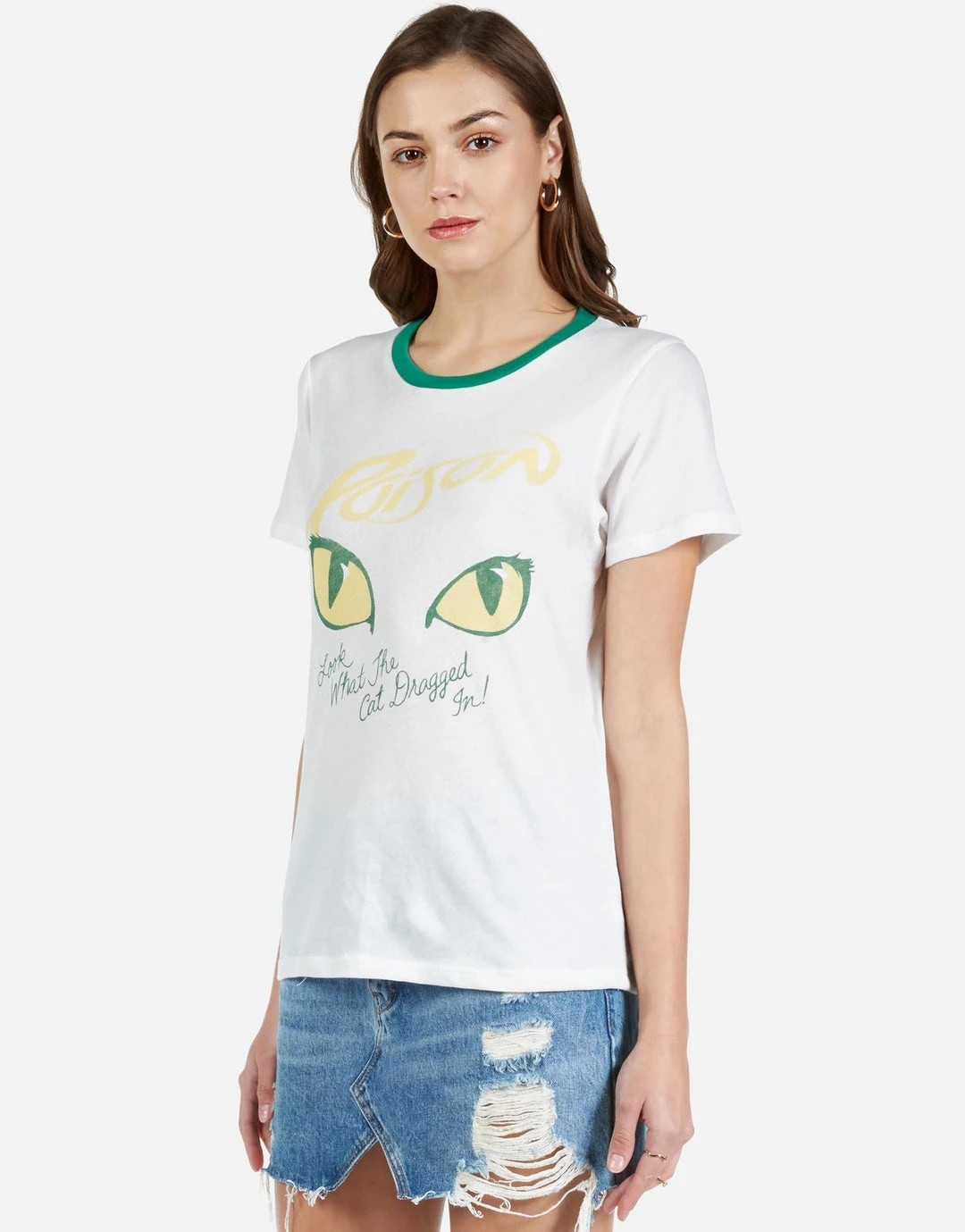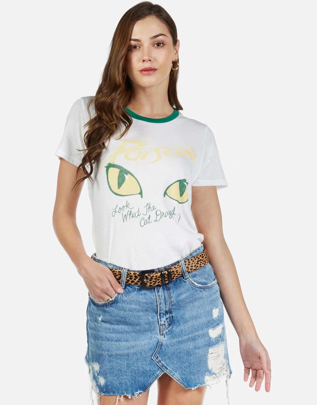Poison Look What The Cat Dragged In Printed on Ultra Soft Lightweight Tee in Milk / Envy by Lauren Moshi.