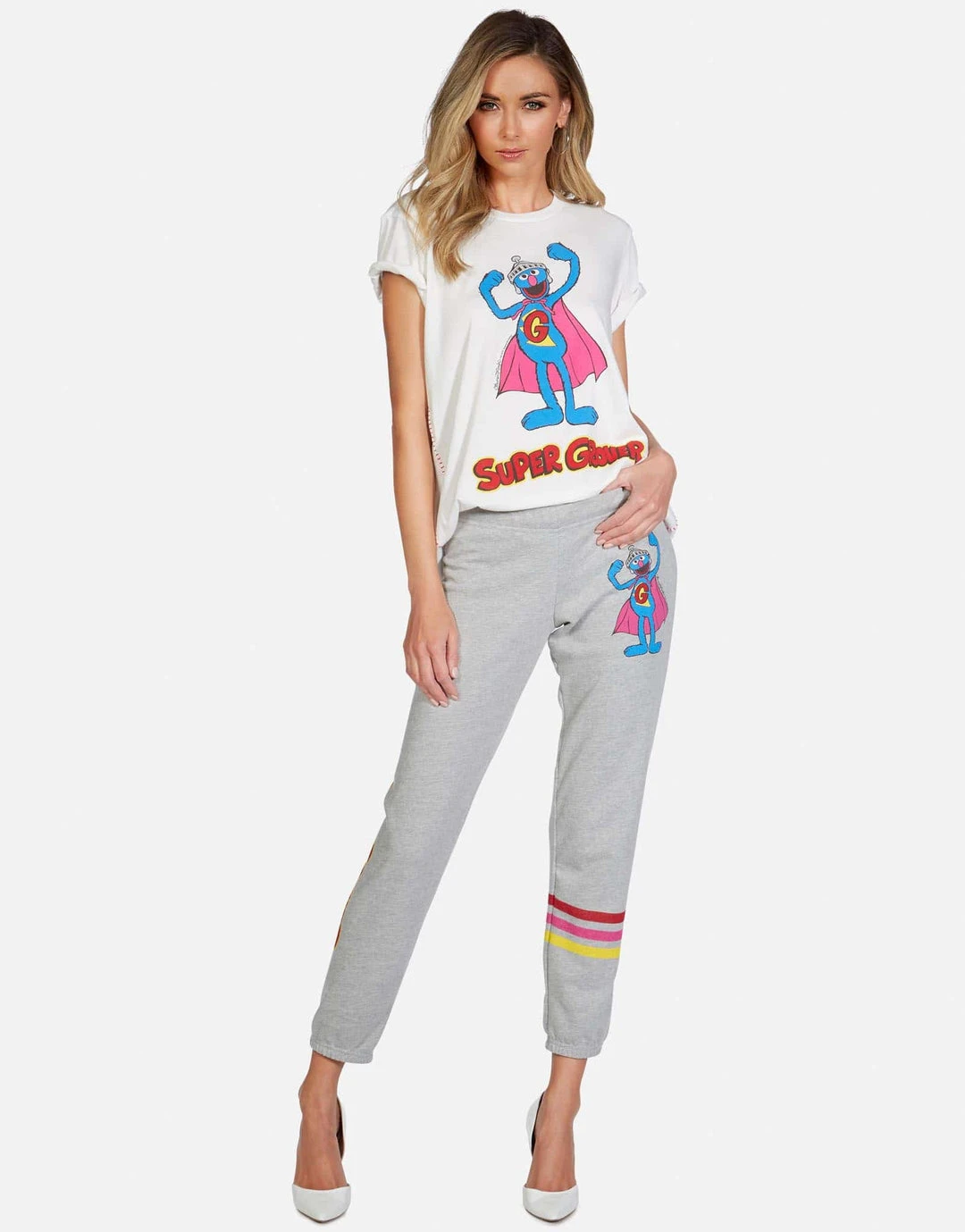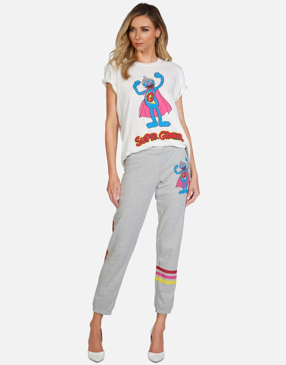 Super Grover Printed on Ultra Soft Lightweight Sweatpant in Heather Grey by Lauren Moshi.