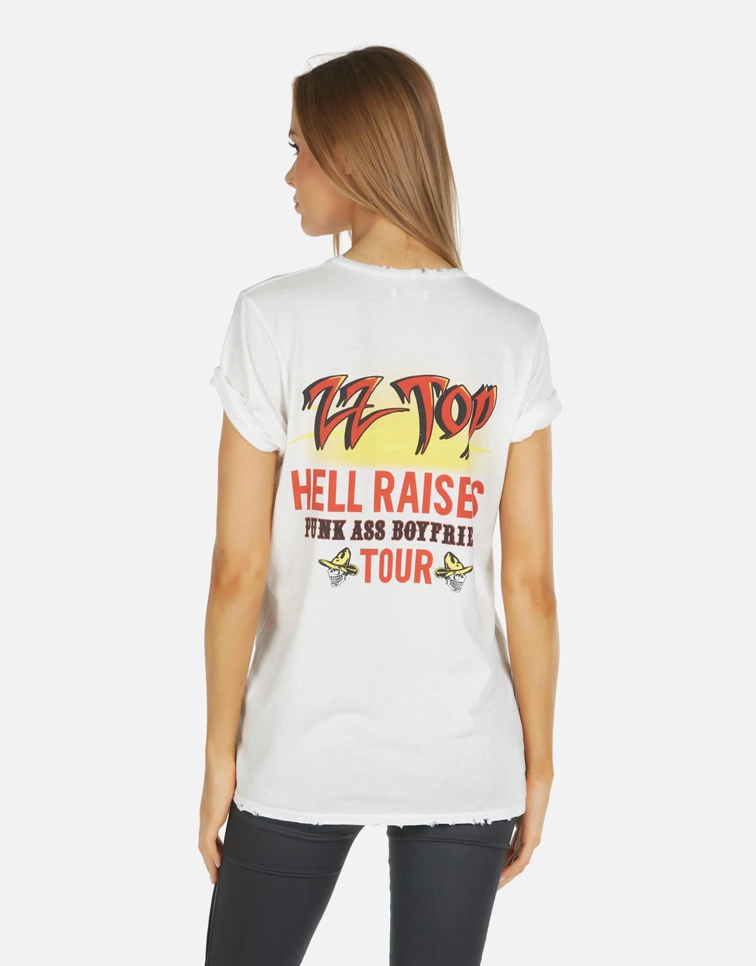 ZZ Top Printed on Ultra Soft Lightweight Tee in Milk by Lauren Moshi.