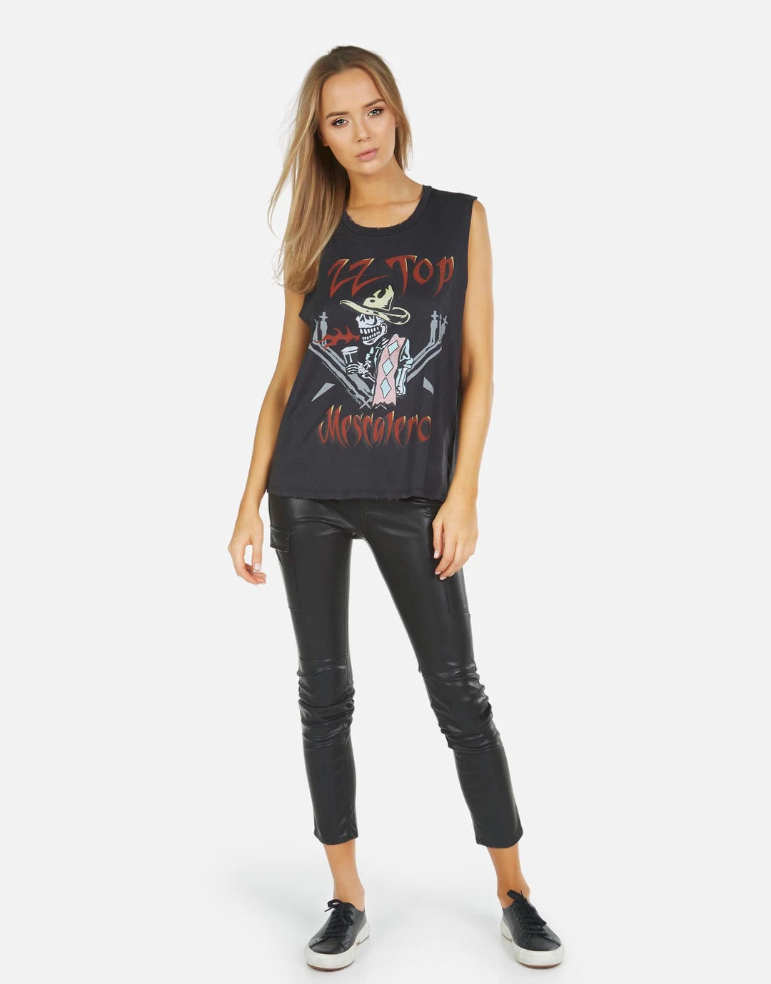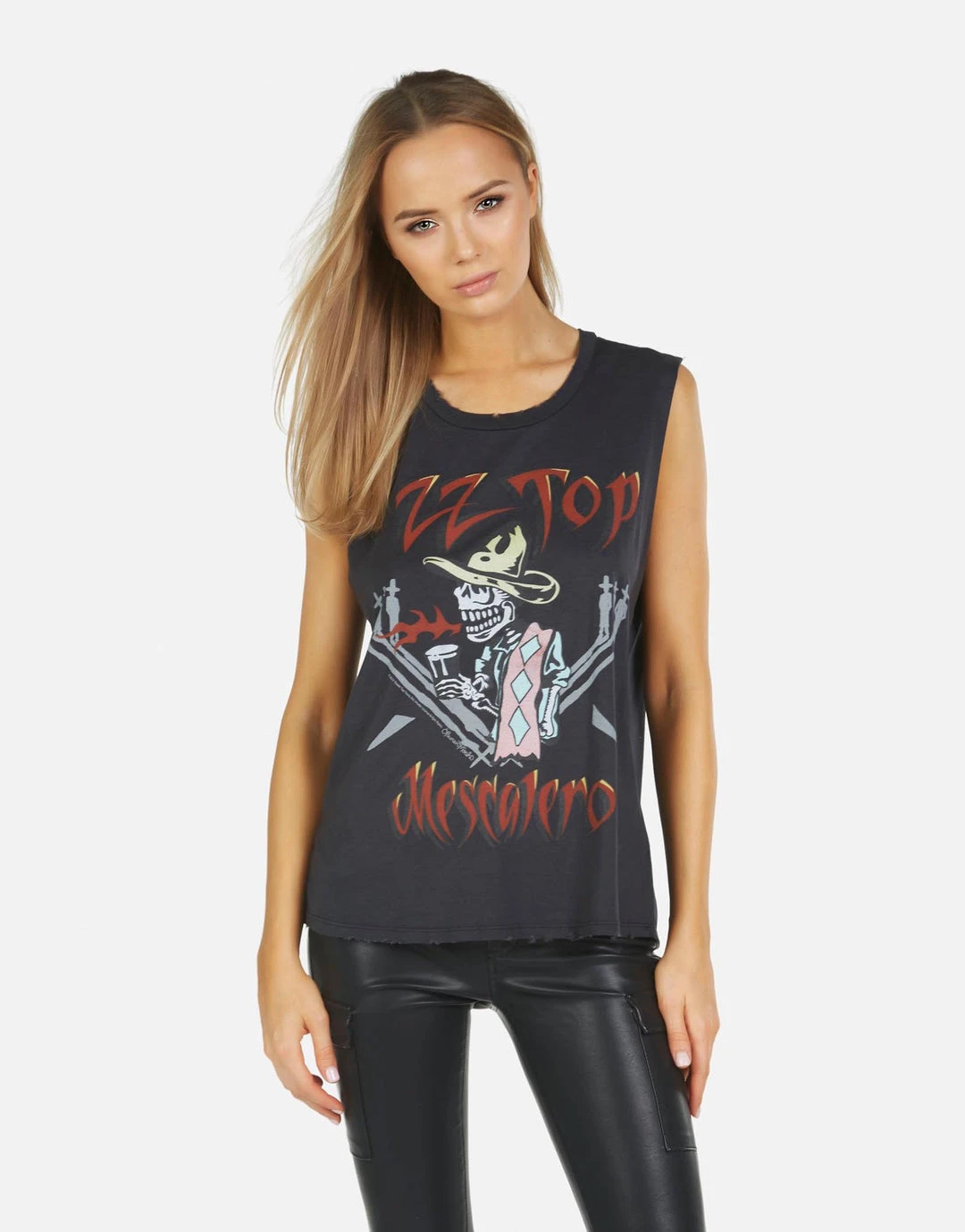 ZZ Top Printed on Ultra Soft Lightweight Tank in Onyx by Lauren Moshi.