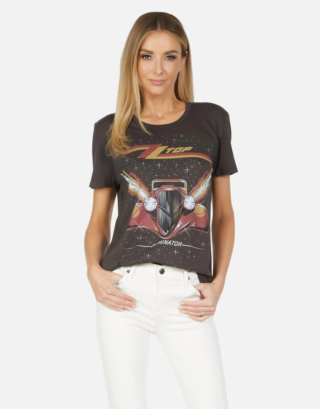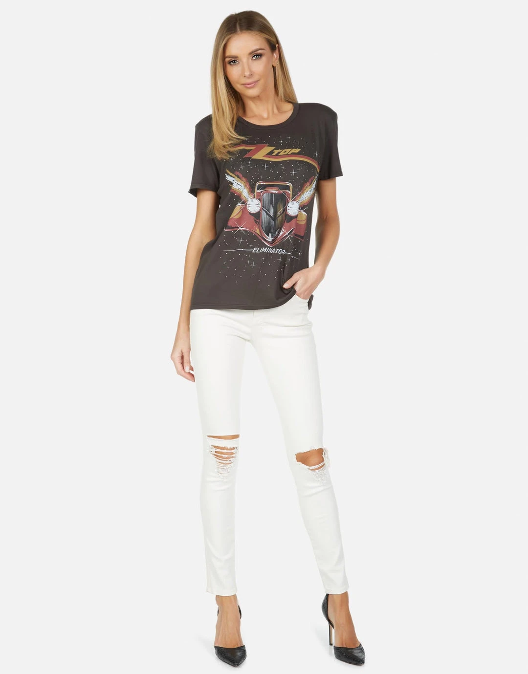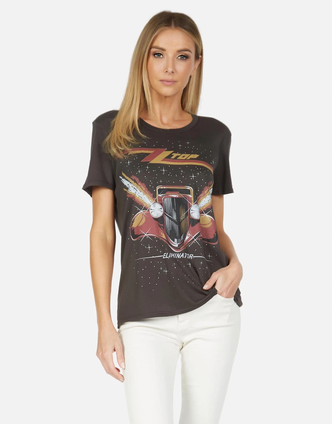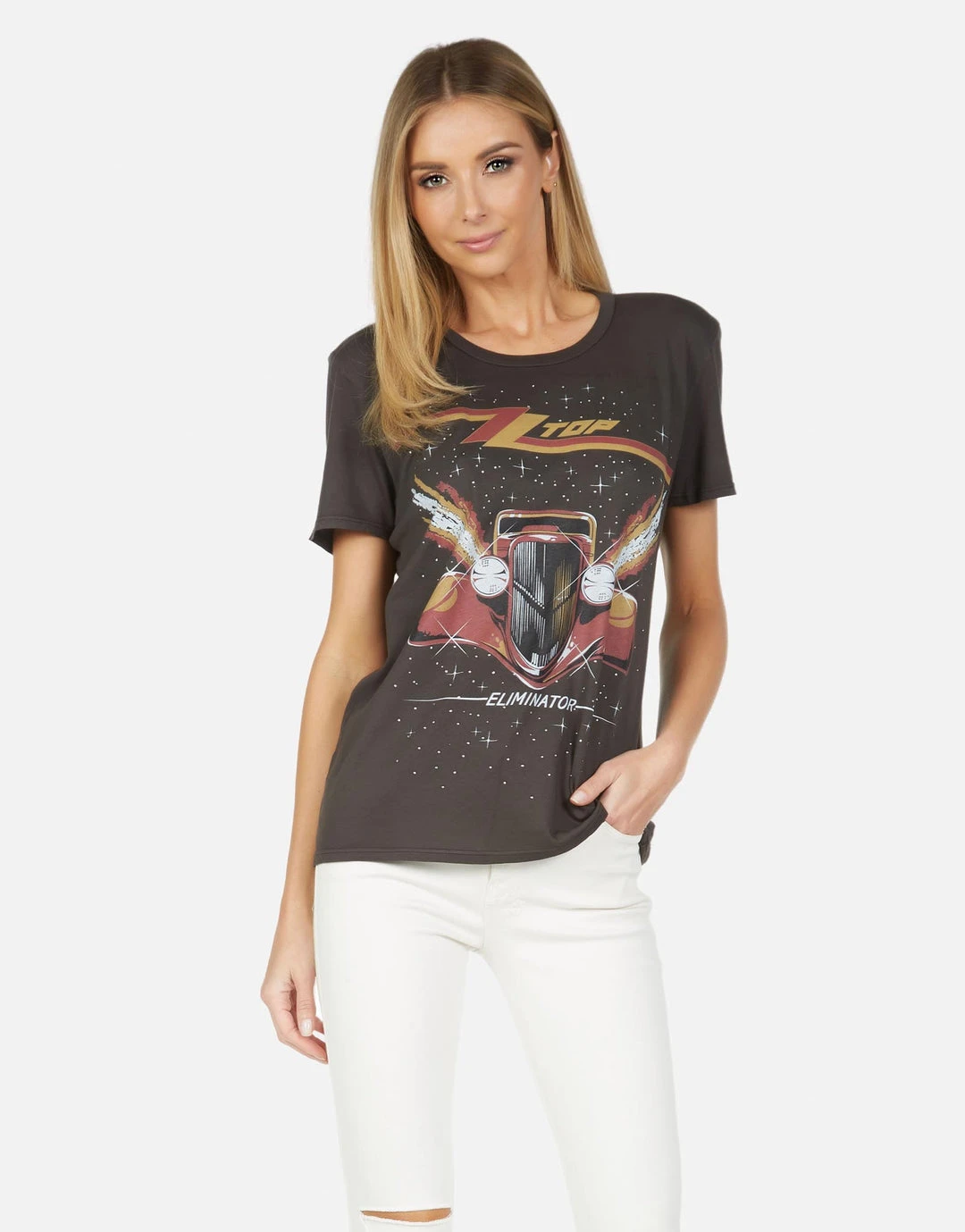 ZZ Top Eliminator Printed on Ultra Soft Lightweight Tee in Onyx by Lauren Moshi.